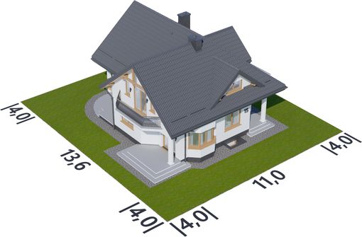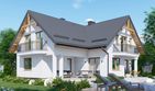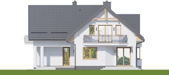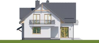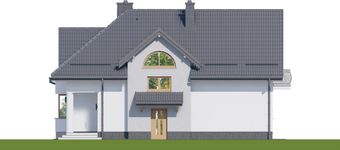 Graficzne opracowanie rzutów poglądowych widocznych na karcie projektu zostało wykonane przez Extradom.pl. Prezentowane przez Extradom.pl wizualizacje wykonane zostały przez autora projektu i należy poczytywać je jedynie za przykład i propozycję wykończenia, wizję architektoniczną autora projektu. Ostateczne wykończenie budynku może nastąpić na wiele sposobów. Szczegółowe rozwiązania zastosowane w oferowanej dokumentacji - w tym również ilość, lokalizacje i wygląd okien, drzwi, kominów - mogą w niewielkim stopniu różnić się od prezentowanej wizualizacji budynku.