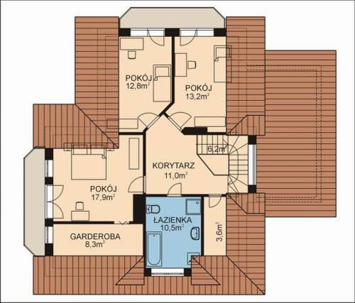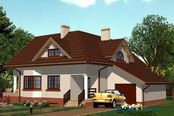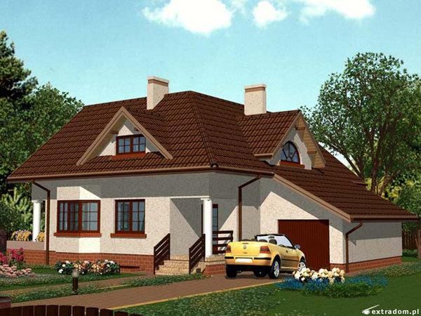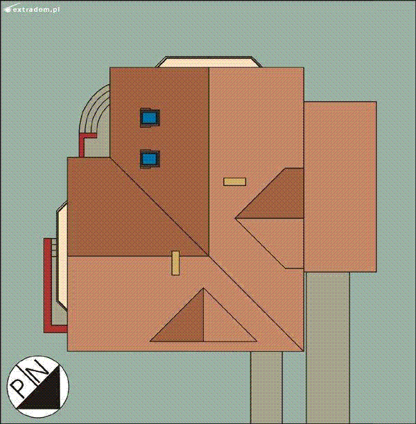 Graficzne opracowanie rzutów poglądowych widocznych na karcie projektu zostało wykonane przez Extradom.pl. Prezentowane przez Extradom.pl wizualizacje wykonane zostały przez autora projektu i należy poczytywać je jedynie za przykład i propozycję wykończenia, wizję architektoniczną autora projektu. Ostateczne wykończenie budynku może nastąpić na wiele sposobów. Szczegółowe rozwiązania zastosowane w oferowanej dokumentacji - w tym również ilość, lokalizacje i wygląd okien, drzwi, kominów - mogą w niewielkim stopniu różnić się od prezentowanej wizualizacji budynku.