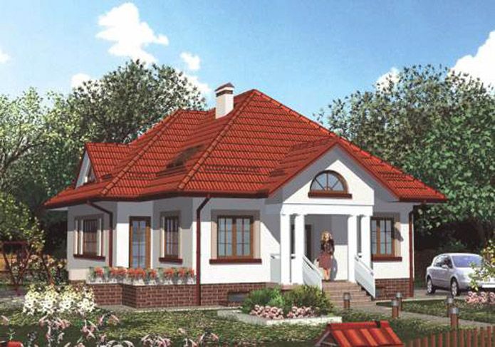 Ściany: bloczki z betonu komórkowego, np. YTONG + ocieplenie TERMOORGANIKA. Strop parteru: typu „TERIVA”. Strop poddasza: drewniany. Dach: wielospadowy, kąt nachylenia 40 st. Pokrycie dachu: dachówka lub blacha. Ocieplenie poddasza: wełna mineralna Rockwool. Tynk: mineralny. Ocieplenie ścian: Styropian Termoorganika.