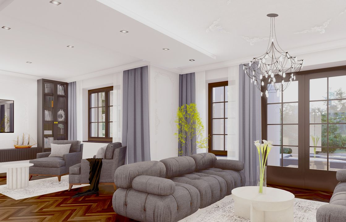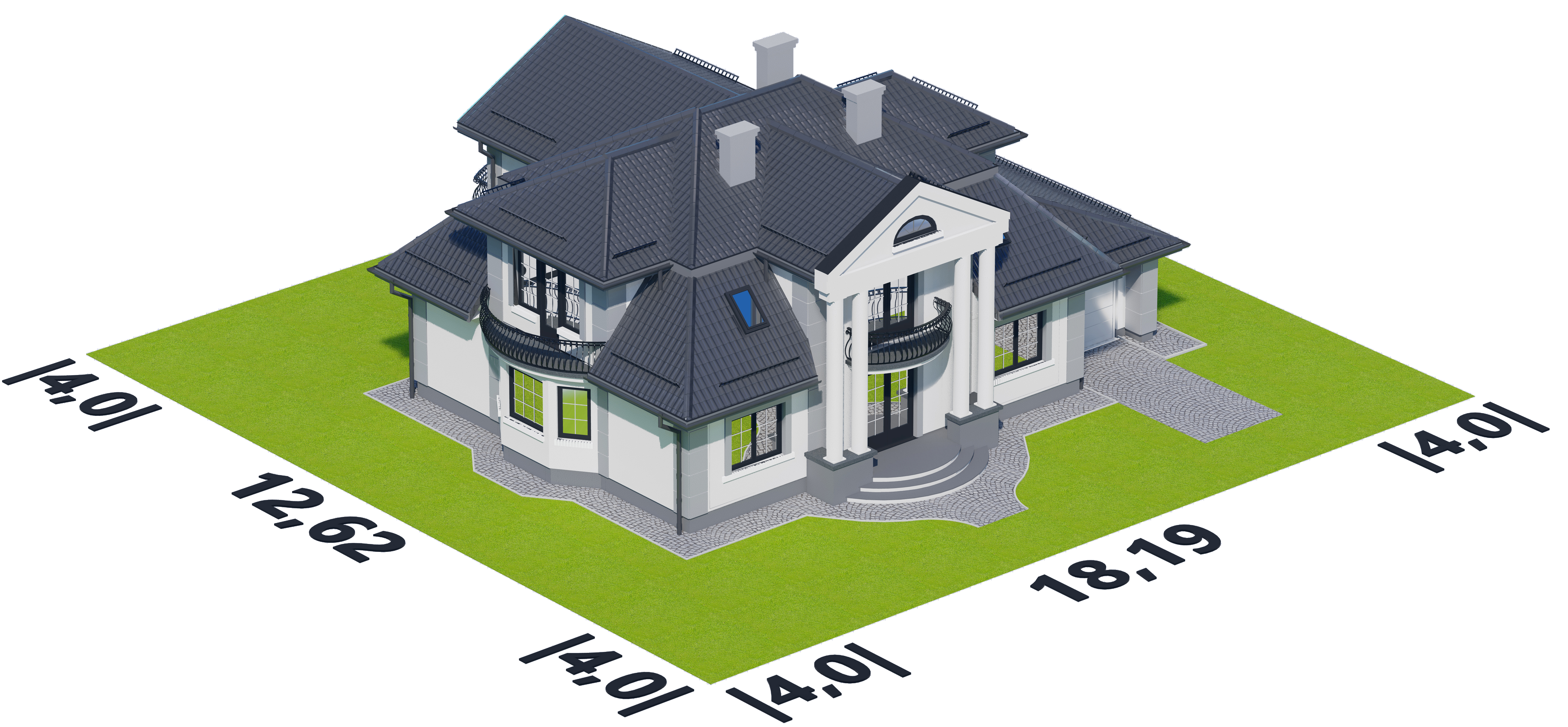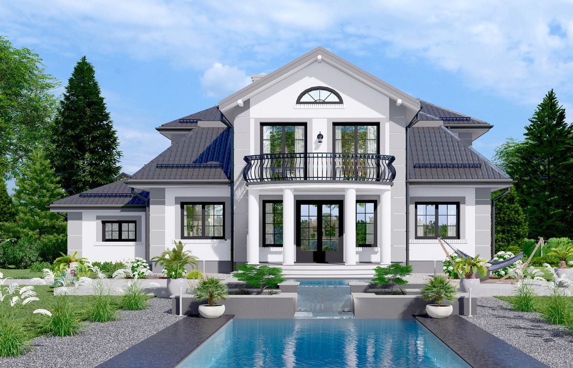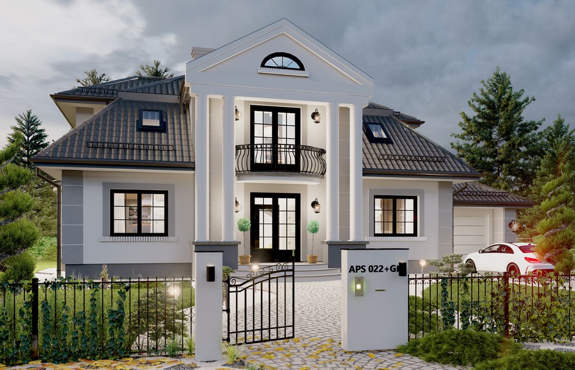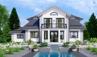 Graficzne opracowanie rzutów poglądowych widocznych na karcie projektu zostało wykonane przez Extradom.pl. Prezentowane przez Extradom.pl wizualizacje wykonane zostały przez autora projektu i należy poczytywać je jedynie za przykład i propozycję wykończenia, wizję architektoniczną autora projektu. Ostateczne wykończenie budynku może nastąpić na wiele sposobów. Szczegółowe rozwiązania zastosowane w oferowanej dokumentacji - w tym również ilość, lokalizacje i wygląd okien, drzwi, kominów - mogą w niewielkim stopniu różnić się od prezentowanej wizualizacji budynku.