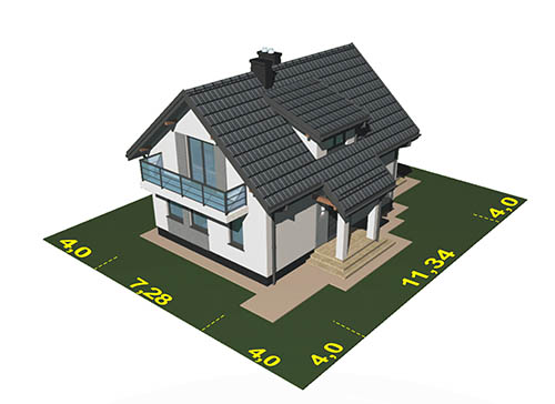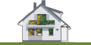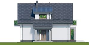 Graficzne opracowanie rzutów poglądowych widocznych na karcie projektu zostało wykonane przez Extradom.pl. Prezentowane przez Extradom.pl wizualizacje wykonane zostały przez autora projektu i należy poczytywać je jedynie za przykład i propozycję wykończenia, wizję architektoniczną autora projektu. Ostateczne wykończenie budynku może nastąpić na wiele sposobów. Szczegółowe rozwiązania zastosowane w oferowanej dokumentacji - w tym również ilość, lokalizacje i wygląd okien, drzwi, kominów - mogą w niewielkim stopniu różnić się od prezentowanej wizualizacji budynku.