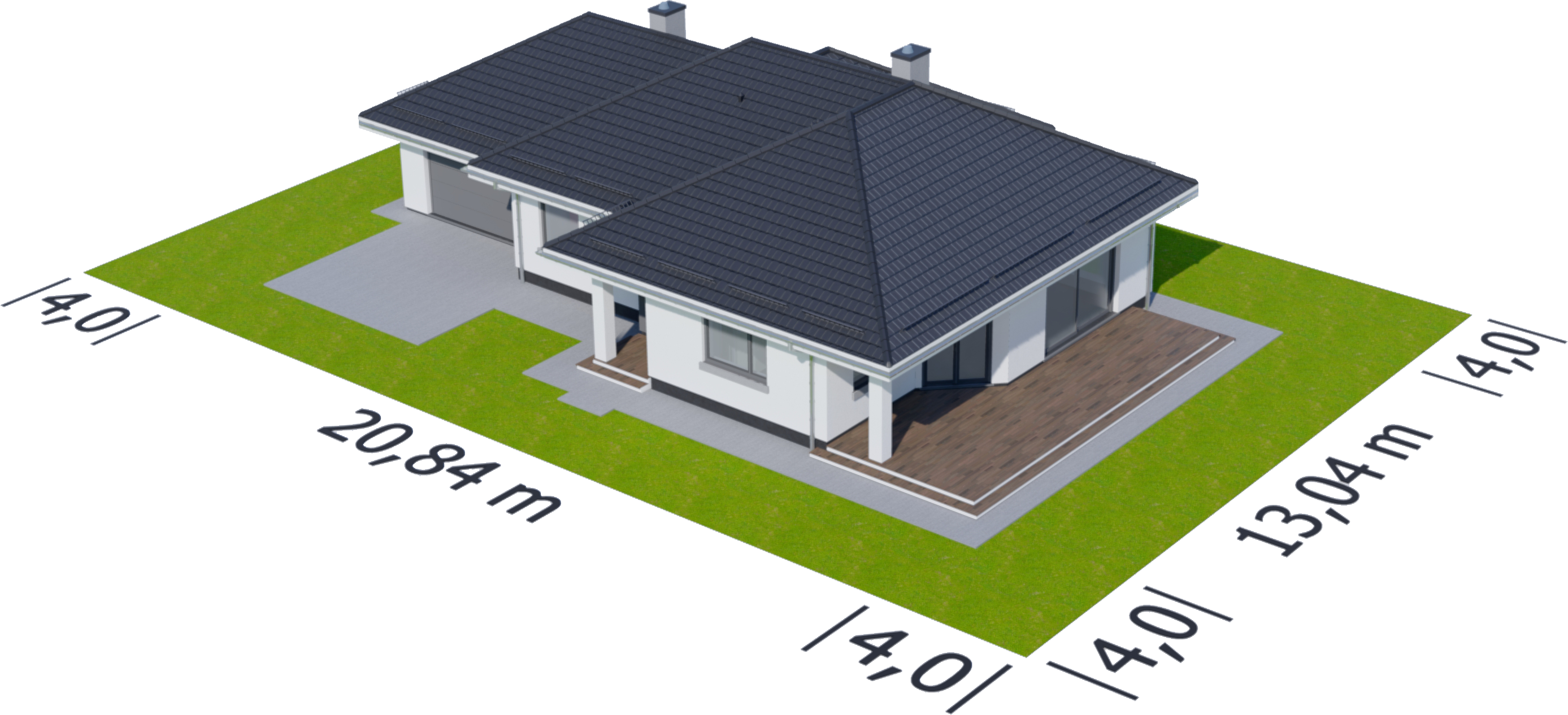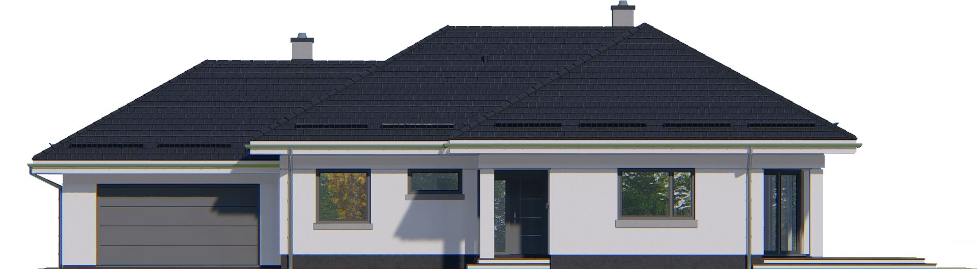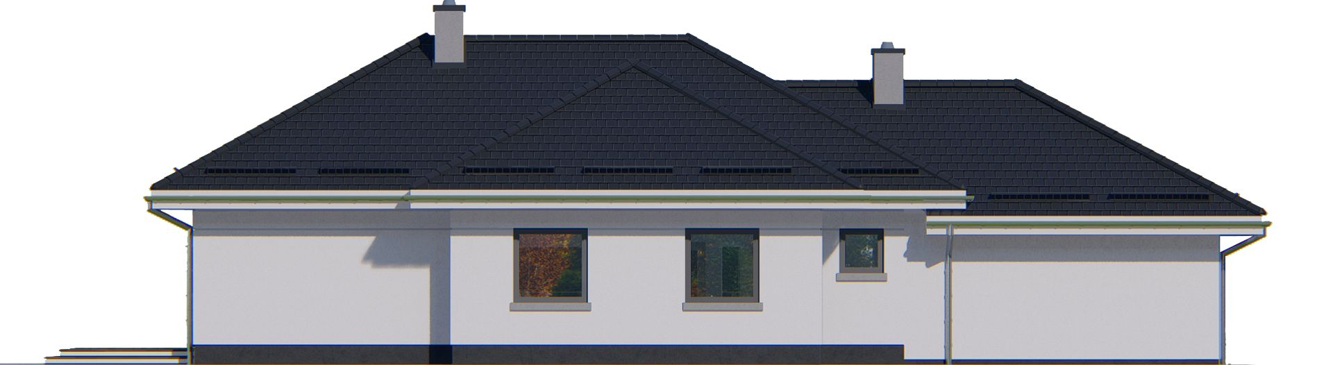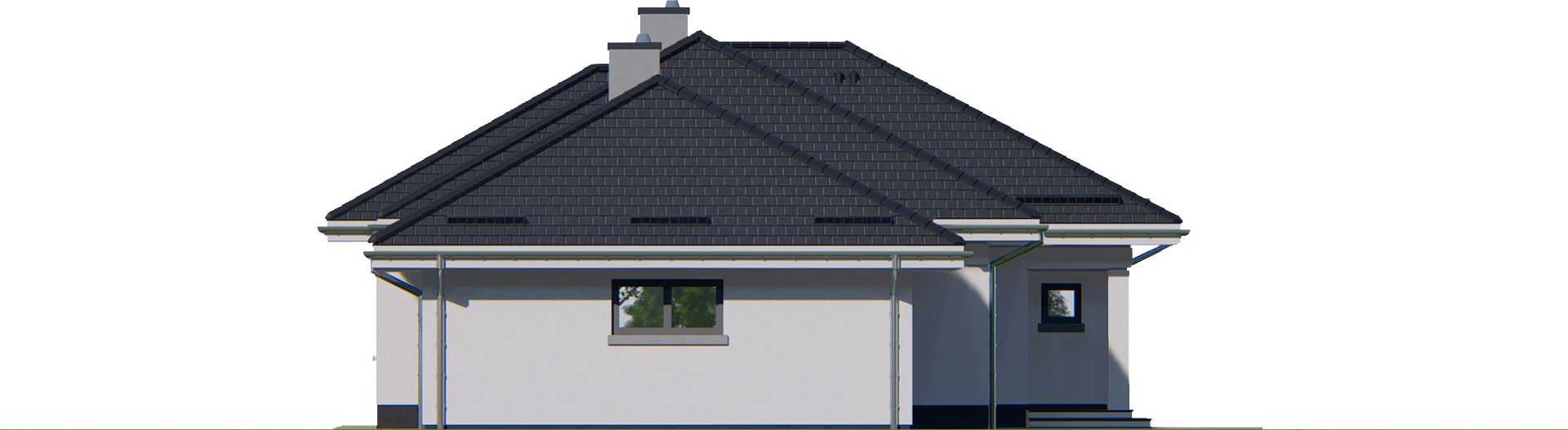 Graficzne opracowanie rzutów poglądowych widocznych na karcie projektu zostało wykonane przez Extradom.pl. Prezentowane przez Extradom.pl wizualizacje wykonane zostały przez autora projektu i należy poczytywać je jedynie za przykład i propozycję wykończenia, wizję architektoniczną autora projektu. Ostateczne wykończenie budynku może nastąpić na wiele sposobów. Szczegółowe rozwiązania zastosowane w oferowanej dokumentacji - w tym również ilość, lokalizacje i wygląd okien, drzwi, kominów - mogą w niewielkim stopniu różnić się od prezentowanej wizualizacji budynku.