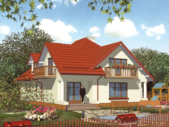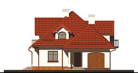 Graficzne opracowanie rzutów poglądowych widocznych na karcie projektu zostało wykonane przez Extradom.pl. Prezentowane przez Extradom.pl wizualizacje wykonane zostały przez autora projektu i należy poczytywać je jedynie za przykład i propozycję wykończenia, wizję architektoniczną autora projektu. Ostateczne wykończenie budynku może nastąpić na wiele sposobów. Szczegółowe rozwiązania zastosowane w oferowanej dokumentacji - w tym również ilość, lokalizacje i wygląd okien, drzwi, kominów - mogą w niewielkim stopniu różnić się od prezentowanej wizualizacji budynku.