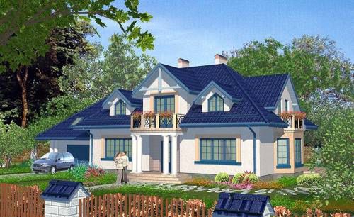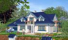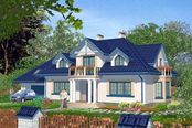 Graficzne opracowanie rzutów poglądowych widocznych na karcie projektu zostało wykonane przez Extradom.pl. Prezentowane przez Extradom.pl wizualizacje wykonane zostały przez autora projektu i należy poczytywać je jedynie za przykład i propozycję wykończenia, wizję architektoniczną autora projektu. Ostateczne wykończenie budynku może nastąpić na wiele sposobów. Szczegółowe rozwiązania zastosowane w oferowanej dokumentacji - w tym również ilość, lokalizacje i wygląd okien, drzwi, kominów - mogą w niewielkim stopniu różnić się od prezentowanej wizualizacji budynku.