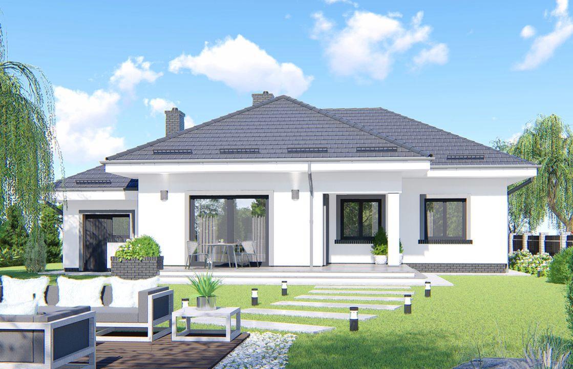 Mamy dwóch już nie najmłodszych synów, więc nie potrzebowaliśmy wielkiego domu (jeden syn w zasadzie już się wyprowadził). Wybraliśmy APS 052 LUA1168, ponieważ wydawał się najbardziej funkcjonalny i nie za duży, a łatwo można było go dostosować do naszych potrzeb.Mieliśmy sporo szczęścia - trafiliśmy na bardzo dobrą ekipę budowlaną, która potrafiła nam trafnie podpowiedzieć w niektórych sprawach, a jednocześnie bez problemu realizowali też nasze pomysły. Co więcej, kierownik naszej budowy był bardzo rzetelnym specjalistą i nie mieliśmy żadnych problemów z samym projektem. I tak, po roku prac wprowadziliśmy się do nowego domu. Zrezygnowaliśmy z kominka w salonie i na początku wybraliśmy zwykły piec na węgiel/drewno (jednak już w tym roku zmieniamy piec na taki na ekogroszek). Koszty ogrzewania za pierwszy sezon zimowy były naprawdę spore - dom nie był jeszcze ocieplony, ani nie wysechł odpowiednio po budowie. Jednak potem, kiedy już budynek został ocieplony (15cm styropianu na ściany oraz 25 cm wełny mineralnej na strop), koszty znacząco spadły i były nawet mniejsze niż te, które ponosiliśmy w poprzednim domu.Naprawdę dobrze oceniam układ pomieszczeń zaproponowany w projekcie domu APS 052 LUA1168. Dla naszej czwórki był naprawdę optymalny - teraz kiedy jeden syn się wyprowadził, a mąż praktycznie cały czas jest w objazdach, w domu jestem ja i młodszy syn, więc mamy całkiem sporą przestrzeń do dyspozycji. Cieszę się, że tak jak w poprzednim mieszkaniu kuchnia i salon są oddzielne- ja często gotuję (choćby dla męża na wyjazdy), więc zamknięta kuchnia to naprawdę dla nas odpowiednie rozwiązanie. Kiedy odwiedza nas niespodziewany gość nie musi widzieć kuchennego rozgardiaszu, bo szybko mogę wygonić go/ją do salonu. W zasadzie wnętrza naszego domu są bardzo jasne. Ale sypialnia przy salonie poprzez zadaszony taras tuż za jej oknem jest ciut ciemna i w tym pokoju najszybciej włączamy światła.Kilka zmian, które po czasie oceniam raczej pozytywnie, wprowadziliśmy do naszego domu. W miejscu kotłowni mamy garderobę. Kotłownia natomiast została przeniesiona do garażu, który właśnie dlatego odpowiednio powiększyliśmy. Zrezygnowaliśmy też z osobnej toalety, w miejscu której powstała mała spiżarka. Jednak teraz uważam, że to był błąd.Uważam, że projekt domu parterowego z garażem APS 052 LUA1168 to był dobry wybór. Znajomi chwalą nasz dom. Mówią, że jest naprawdę ładny i zgrabny. Polecam i pozdrawiam.