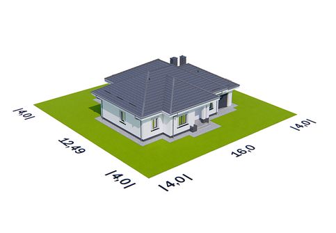 Graficzne opracowanie rzutów poglądowych widocznych na karcie projektu zostało wykonane przez Extradom.pl. Prezentowane przez Extradom.pl wizualizacje wykonane zostały przez autora projektu i należy poczytywać je jedynie za przykład i propozycję wykończenia, wizję architektoniczną autora projektu. Ostateczne wykończenie budynku może nastąpić na wiele sposobów. Szczegółowe rozwiązania zastosowane w oferowanej dokumentacji - w tym również ilość, lokalizacje i wygląd okien, drzwi, kominów - mogą w niewielkim stopniu różnić się od prezentowanej wizualizacji budynku.