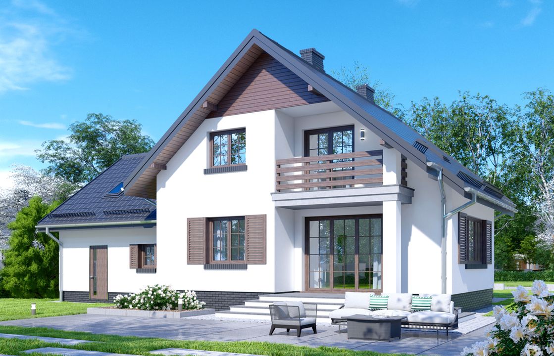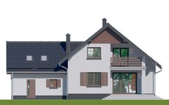Graficzne opracowanie rzutów poglądowych widocznych na karcie projektu zostało wykonane przez Extradom.pl. Prezentowane przez Extradom.pl wizualizacje wykonane zostały przez autora projektu i należy poczytywać je jedynie za przykład i propozycję wykończenia, wizję architektoniczną autora projektu. Ostateczne wykończenie budynku może nastąpić na wiele sposobów. Szczegółowe rozwiązania zastosowane w oferowanej dokumentacji - w tym również ilość, lokalizacje i wygląd okien, drzwi, kominów - mogą w niewielkim stopniu różnić się od prezentowanej wizualizacji budynku.