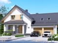 Graficzne opracowanie rzutów poglądowych widocznych na karcie projektu zostało wykonane przez Extradom.pl. Prezentowane przez Extradom.pl wizualizacje wykonane zostały przez autora projektu i należy poczytywać je jedynie za przykład i propozycję wykończenia, wizję architektoniczną autora projektu. Ostateczne wykończenie budynku może nastąpić na wiele sposobów. Szczegółowe rozwiązania zastosowane w oferowanej dokumentacji - w tym również ilość, lokalizacje i wygląd okien, drzwi, kominów - mogą w niewielkim stopniu różnić się od prezentowanej wizualizacji budynku.