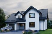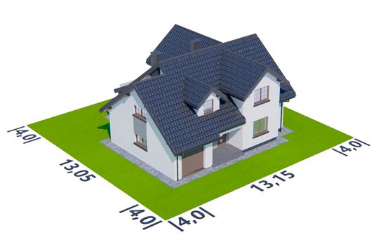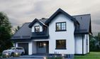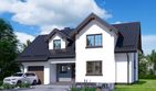 Graficzne opracowanie rzutów poglądowych widocznych na karcie projektu zostało wykonane przez Extradom.pl. Prezentowane przez Extradom.pl wizualizacje wykonane zostały przez autora projektu i należy poczytywać je jedynie za przykład i propozycję wykończenia, wizję architektoniczną autora projektu. Ostateczne wykończenie budynku może nastąpić na wiele sposobów. Szczegółowe rozwiązania zastosowane w oferowanej dokumentacji - w tym również ilość, lokalizacje i wygląd okien, drzwi, kominów - mogą w niewielkim stopniu różnić się od prezentowanej wizualizacji budynku.