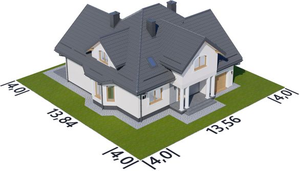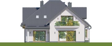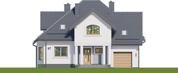 Graficzne opracowanie rzutów poglądowych widocznych na karcie projektu zostało wykonane przez Extradom.pl. Prezentowane przez Extradom.pl wizualizacje wykonane zostały przez autora projektu i należy poczytywać je jedynie za przykład i propozycję wykończenia, wizję architektoniczną autora projektu. Ostateczne wykończenie budynku może nastąpić na wiele sposobów. Szczegółowe rozwiązania zastosowane w oferowanej dokumentacji - w tym również ilość, lokalizacje i wygląd okien, drzwi, kominów - mogą w niewielkim stopniu różnić się od prezentowanej wizualizacji budynku.