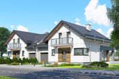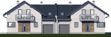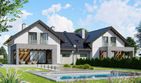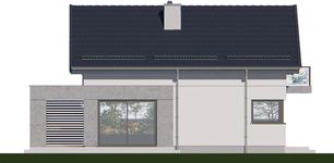 Graficzne opracowanie rzutów poglądowych widocznych na karcie projektu zostało wykonane przez Extradom.pl. Prezentowane przez Extradom.pl wizualizacje wykonane zostały przez autora projektu i należy poczytywać je jedynie za przykład i propozycję wykończenia, wizję architektoniczną autora projektu. Ostateczne wykończenie budynku może nastąpić na wiele sposobów. Szczegółowe rozwiązania zastosowane w oferowanej dokumentacji - w tym również ilość, lokalizacje i wygląd okien, drzwi, kominów - mogą w niewielkim stopniu różnić się od prezentowanej wizualizacji budynku.