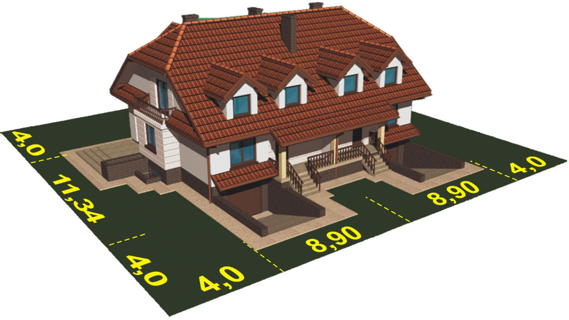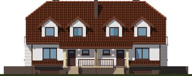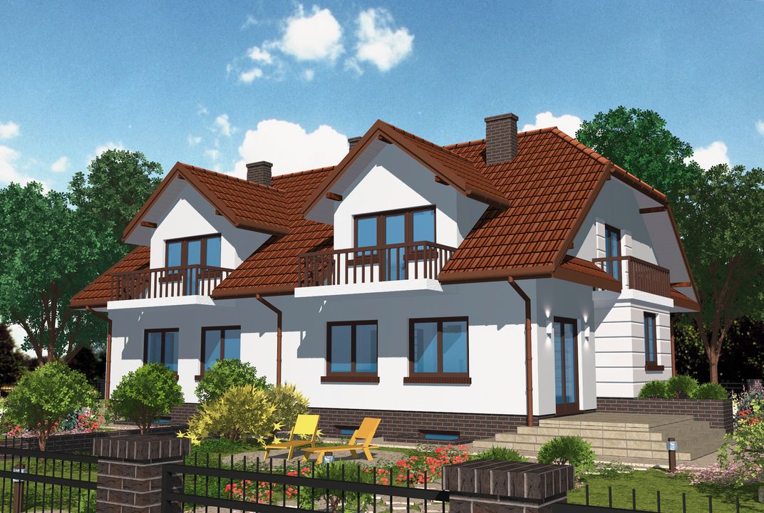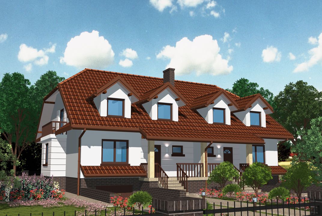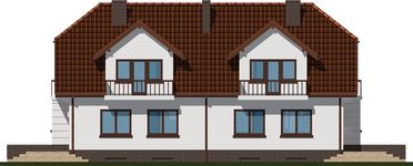Graficzne opracowanie rzutów poglądowych widocznych na karcie projektu zostało wykonane przez Extradom.pl. Prezentowane przez Extradom.pl wizualizacje wykonane zostały przez autora projektu i należy poczytywać je jedynie za przykład i propozycję wykończenia, wizję architektoniczną autora projektu. Ostateczne wykończenie budynku może nastąpić na wiele sposobów. Szczegółowe rozwiązania zastosowane w oferowanej dokumentacji - w tym również ilość, lokalizacje i wygląd okien, drzwi, kominów - mogą w niewielkim stopniu różnić się od prezentowanej wizualizacji budynku.