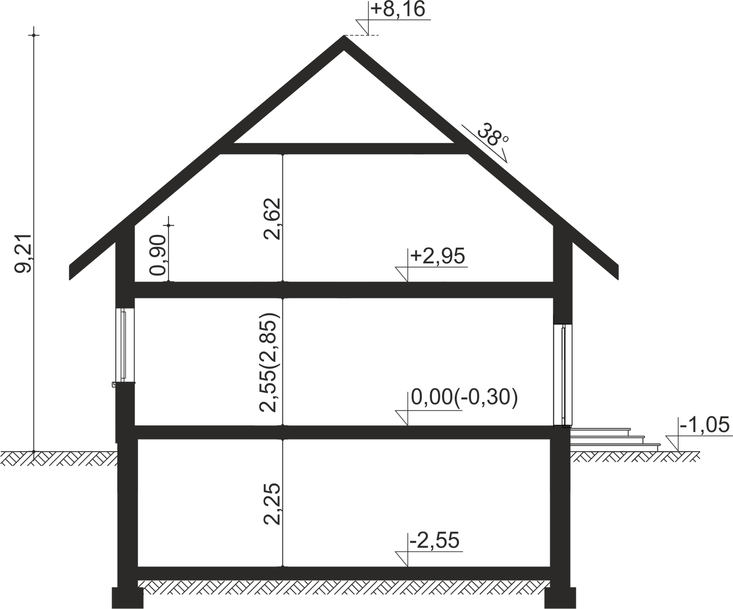 Ściany: bloczki z betonu komórkowego + ocieplenie. Strop parteru: typu TERIVA. Strop poddasza: drewniany. Dach: drewniany, dwuspadowy. Pokrycie dachu: dachówka lub blacha. Ocieplenie poddasza: wełna mineralna ROCKWOOL. Tynk: mineralny.