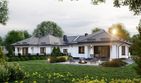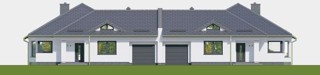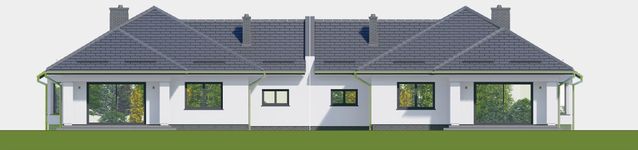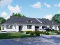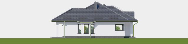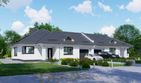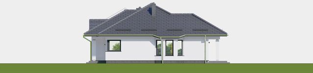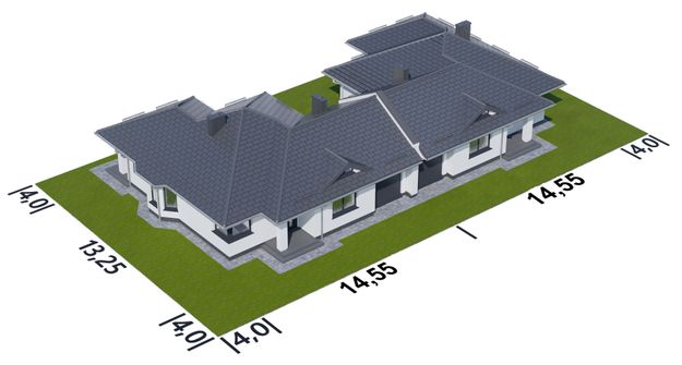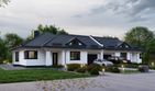Graficzne opracowanie rzutów poglądowych widocznych na karcie projektu zostało wykonane przez Extradom.pl. Prezentowane przez Extradom.pl wizualizacje wykonane zostały przez autora projektu i należy poczytywać je jedynie za przykład i propozycję wykończenia, wizję architektoniczną autora projektu. Ostateczne wykończenie budynku może nastąpić na wiele sposobów. Szczegółowe rozwiązania zastosowane w oferowanej dokumentacji - w tym również ilość, lokalizacje i wygląd okien, drzwi, kominów - mogą w niewielkim stopniu różnić się od prezentowanej wizualizacji budynku.