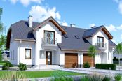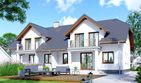 Graficzne opracowanie rzutów poglądowych widocznych na karcie projektu zostało wykonane przez Extradom.pl. Prezentowane przez Extradom.pl wizualizacje wykonane zostały przez autora projektu i należy poczytywać je jedynie za przykład i propozycję wykończenia, wizję architektoniczną autora projektu. Ostateczne wykończenie budynku może nastąpić na wiele sposobów. Szczegółowe rozwiązania zastosowane w oferowanej dokumentacji - w tym również ilość, lokalizacje i wygląd okien, drzwi, kominów - mogą w niewielkim stopniu różnić się od prezentowanej wizualizacji budynku.