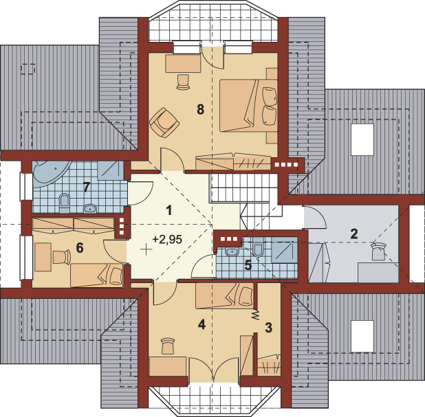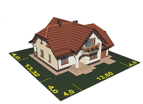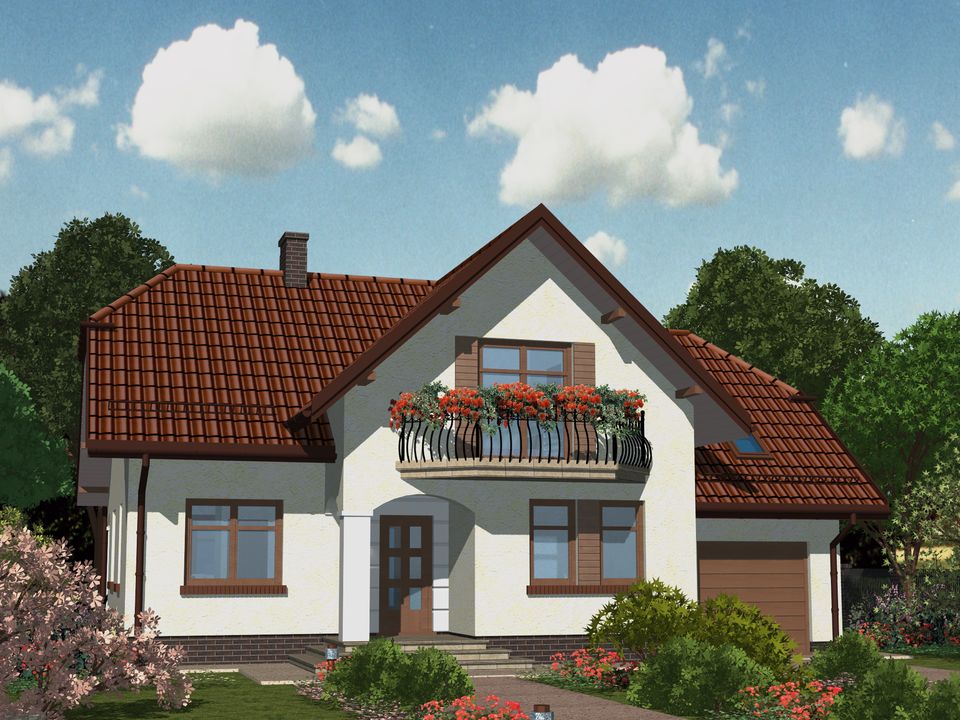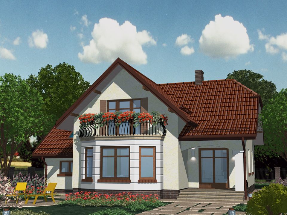 Graficzne opracowanie rzutów poglądowych widocznych na karcie projektu zostało wykonane przez Extradom.pl. Prezentowane przez Extradom.pl wizualizacje wykonane zostały przez autora projektu i należy poczytywać je jedynie za przykład i propozycję wykończenia, wizję architektoniczną autora projektu. Ostateczne wykończenie budynku może nastąpić na wiele sposobów. Szczegółowe rozwiązania zastosowane w oferowanej dokumentacji - w tym również ilość, lokalizacje i wygląd okien, drzwi, kominów - mogą w niewielkim stopniu różnić się od prezentowanej wizualizacji budynku.