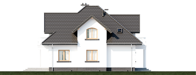 Graficzne opracowanie rzutów poglądowych widocznych na karcie projektu zostało wykonane przez Extradom.pl. Prezentowane przez Extradom.pl wizualizacje wykonane zostały przez autora projektu i należy poczytywać je jedynie za przykład i propozycję wykończenia, wizję architektoniczną autora projektu. Ostateczne wykończenie budynku może nastąpić na wiele sposobów. Szczegółowe rozwiązania zastosowane w oferowanej dokumentacji - w tym również ilość, lokalizacje i wygląd okien, drzwi, kominów - mogą w niewielkim stopniu różnić się od prezentowanej wizualizacji budynku.