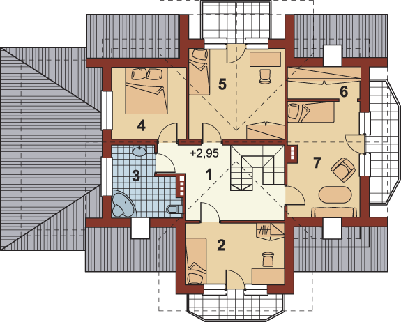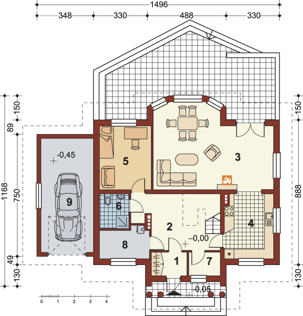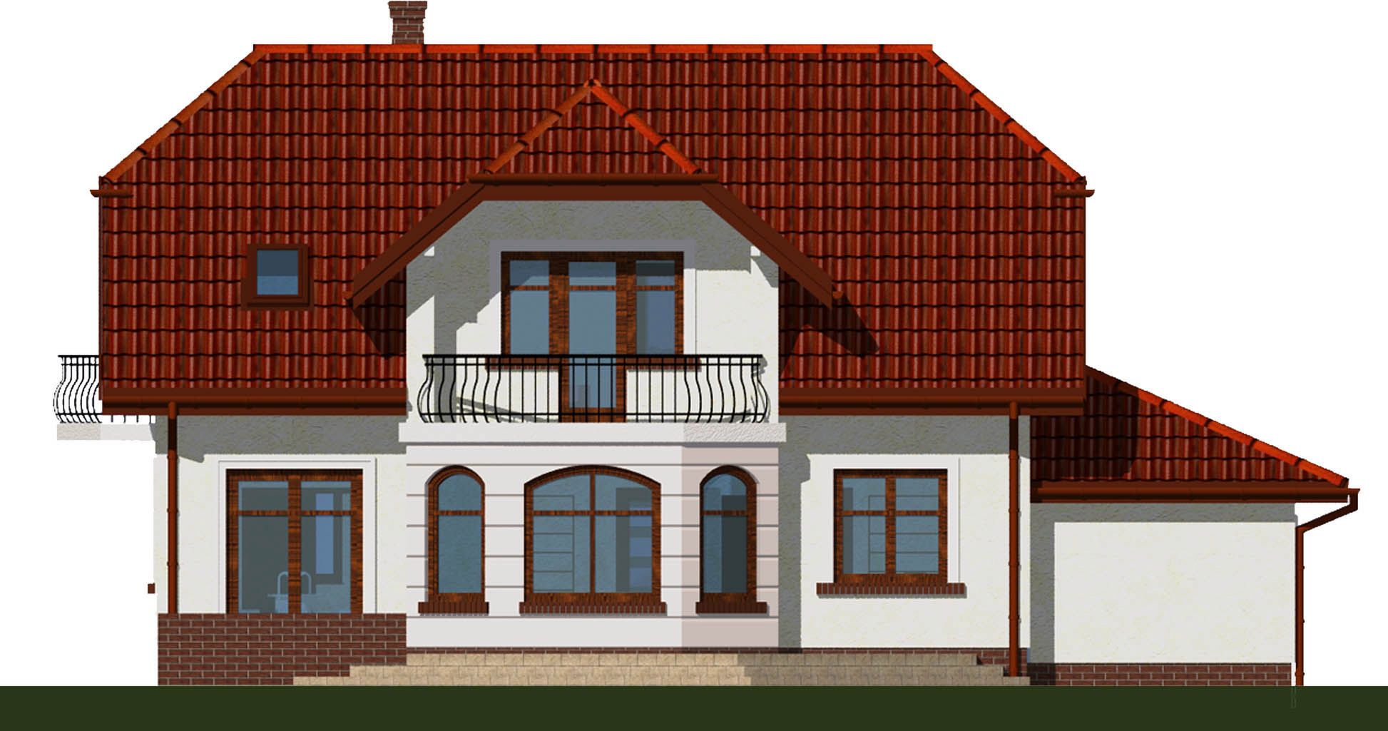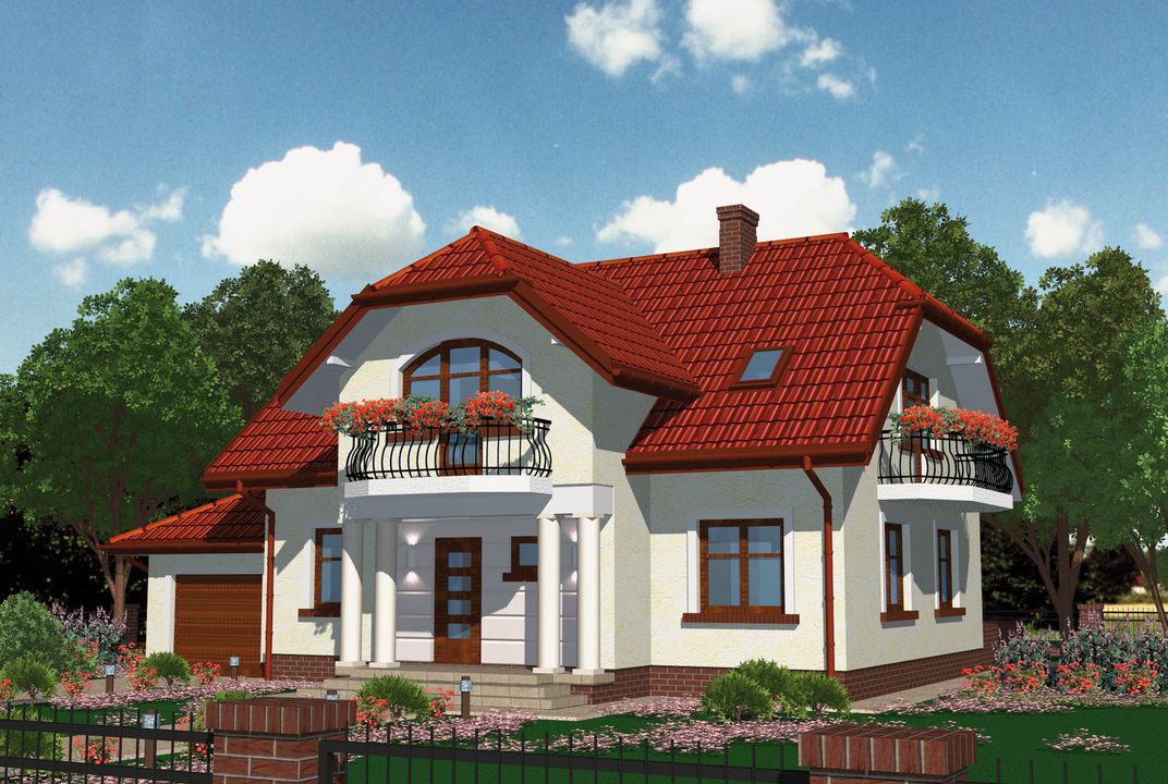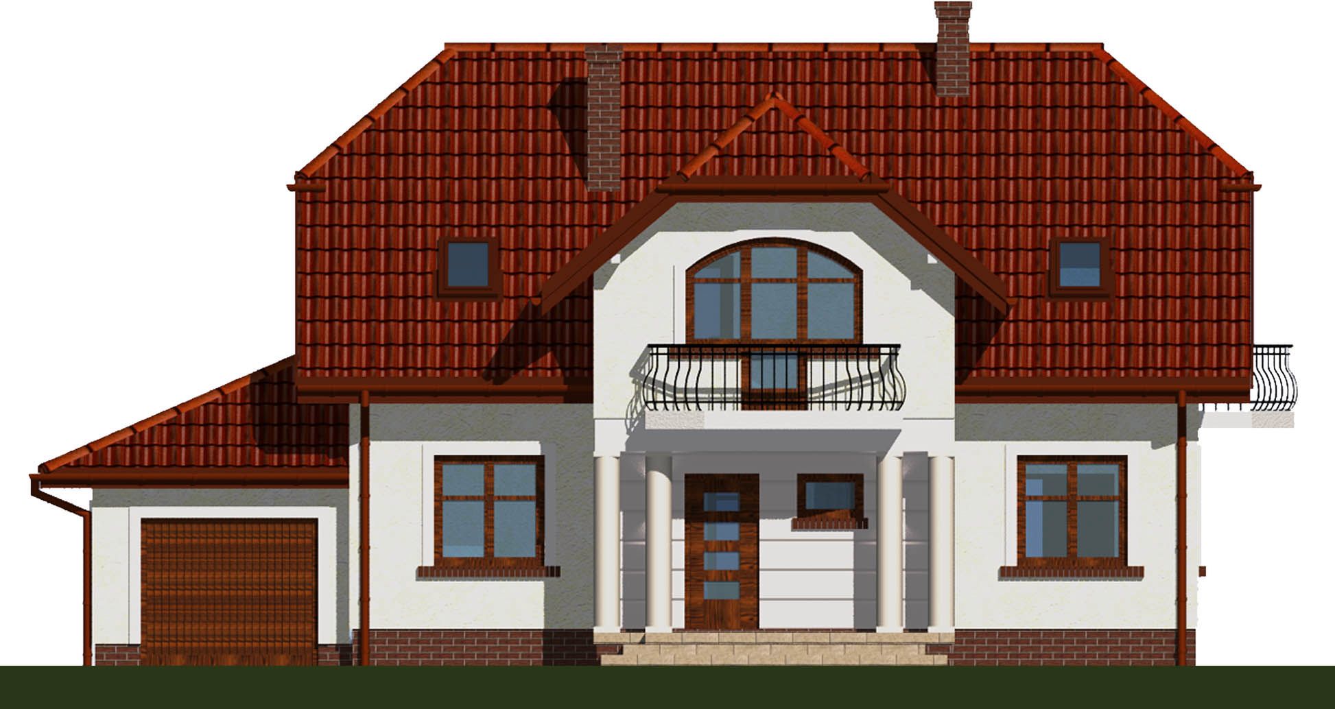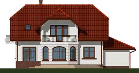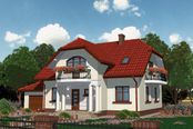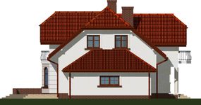 Graficzne opracowanie rzutów poglądowych widocznych na karcie projektu zostało wykonane przez Extradom.pl. Prezentowane przez Extradom.pl wizualizacje wykonane zostały przez autora projektu i należy poczytywać je jedynie za przykład i propozycję wykończenia, wizję architektoniczną autora projektu. Ostateczne wykończenie budynku może nastąpić na wiele sposobów. Szczegółowe rozwiązania zastosowane w oferowanej dokumentacji - w tym również ilość, lokalizacje i wygląd okien, drzwi, kominów - mogą w niewielkim stopniu różnić się od prezentowanej wizualizacji budynku.