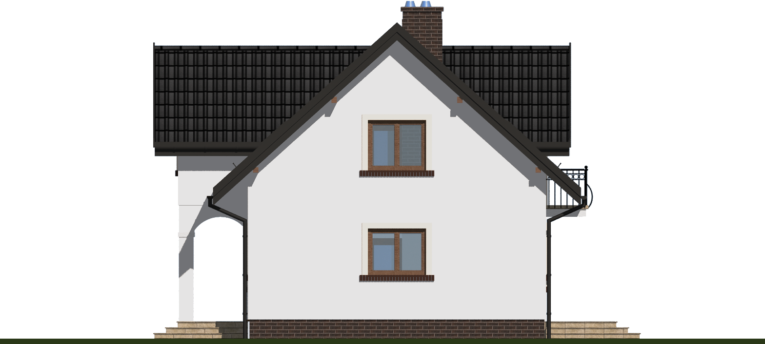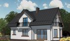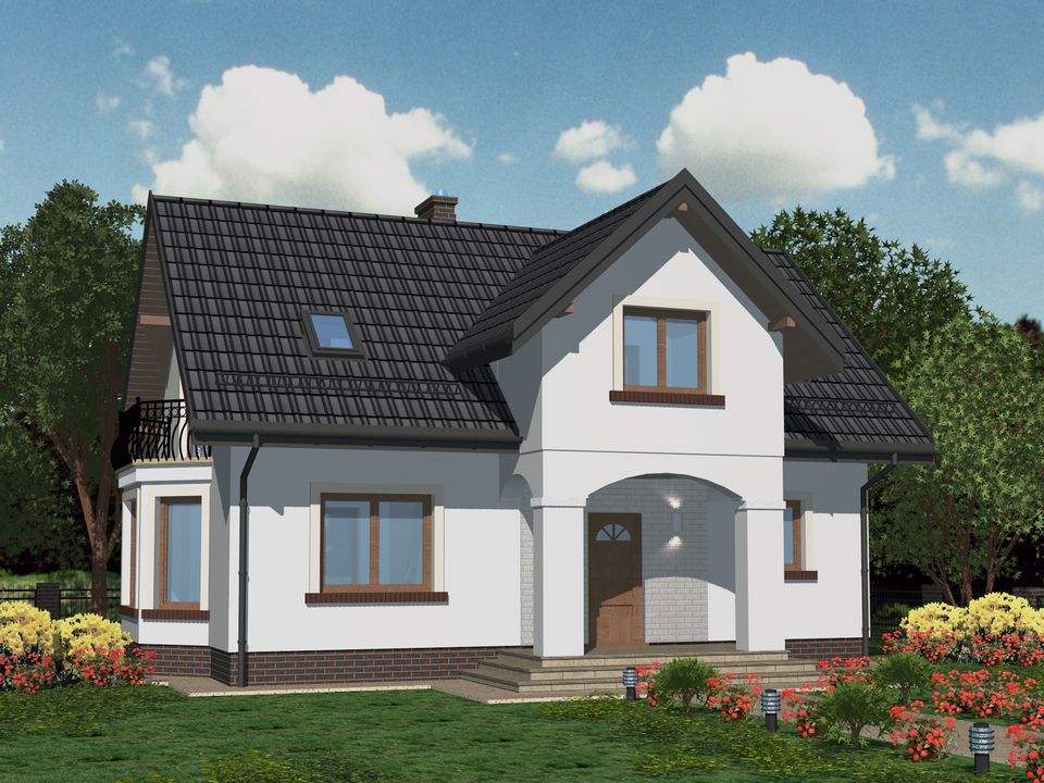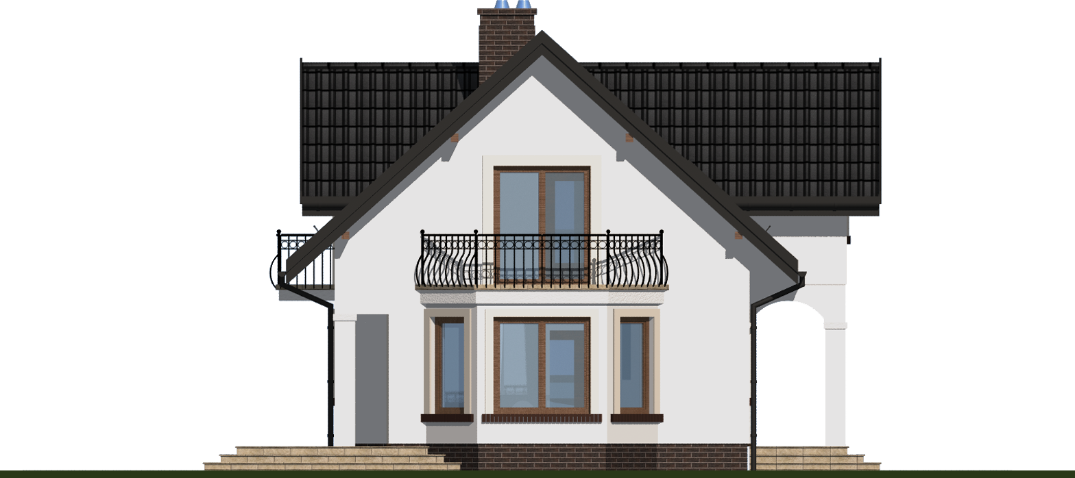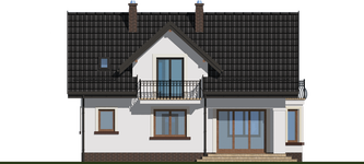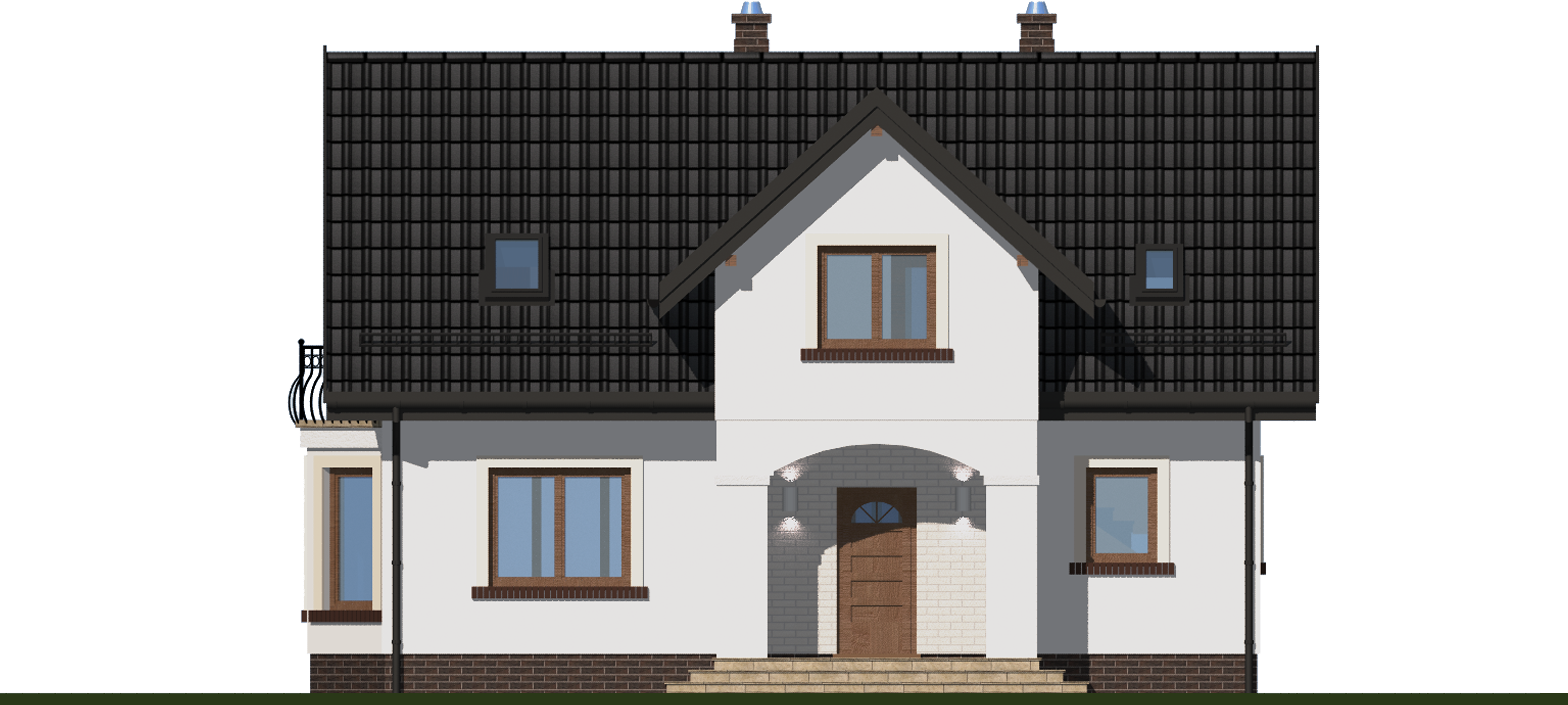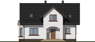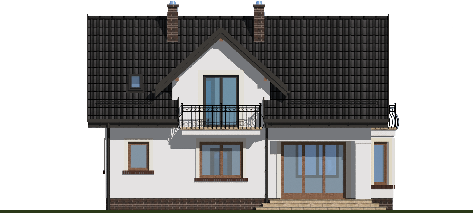 Graficzne opracowanie rzutów poglądowych widocznych na karcie projektu zostało wykonane przez Extradom.pl. Prezentowane przez Extradom.pl wizualizacje wykonane zostały przez autora projektu i należy poczytywać je jedynie za przykład i propozycję wykończenia, wizję architektoniczną autora projektu. Ostateczne wykończenie budynku może nastąpić na wiele sposobów. Szczegółowe rozwiązania zastosowane w oferowanej dokumentacji - w tym również ilość, lokalizacje i wygląd okien, drzwi, kominów - mogą w niewielkim stopniu różnić się od prezentowanej wizualizacji budynku.
