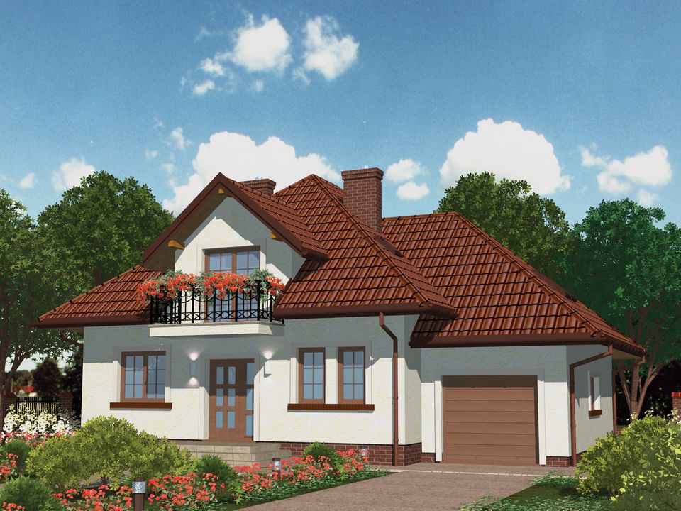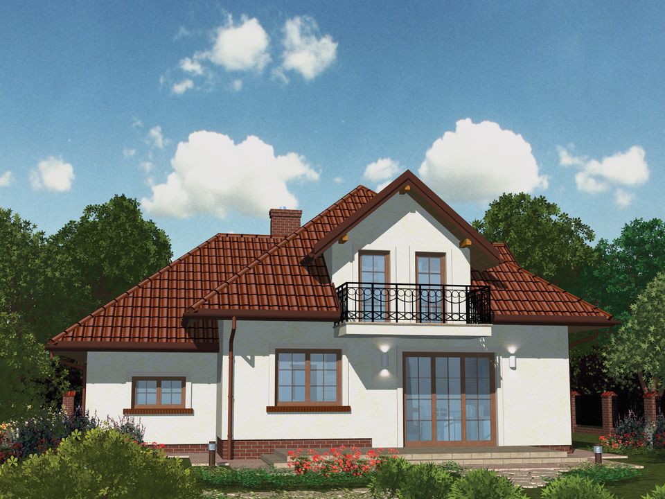 Graficzne opracowanie rzutów poglądowych widocznych na karcie projektu zostało wykonane przez Extradom.pl. Prezentowane przez Extradom.pl wizualizacje wykonane zostały przez autora projektu i należy poczytywać je jedynie za przykład i propozycję wykończenia, wizję architektoniczną autora projektu. Ostateczne wykończenie budynku może nastąpić na wiele sposobów. Szczegółowe rozwiązania zastosowane w oferowanej dokumentacji - w tym również ilość, lokalizacje i wygląd okien, drzwi, kominów - mogą w niewielkim stopniu różnić się od prezentowanej wizualizacji budynku.