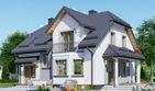 Graficzne opracowanie rzutów poglądowych widocznych na karcie projektu zostało wykonane przez Extradom.pl. Prezentowane przez Extradom.pl wizualizacje wykonane zostały przez autora projektu i należy poczytywać je jedynie za przykład i propozycję wykończenia, wizję architektoniczną autora projektu. Ostateczne wykończenie budynku może nastąpić na wiele sposobów. Szczegółowe rozwiązania zastosowane w oferowanej dokumentacji - w tym również ilość, lokalizacje i wygląd okien, drzwi, kominów - mogą w niewielkim stopniu różnić się od prezentowanej wizualizacji budynku.
