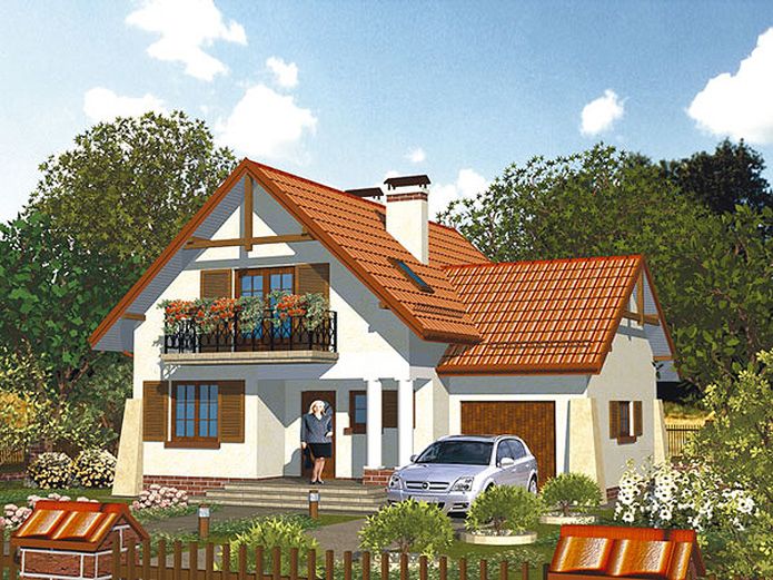 Ściany: bloczki z betonu komórkowego + ocieplenie TERMOORGANIKA. Strop parteru: typu TERIVA. Strop poddasza: drewnianyDach: drewniany, dwuspadowy. Pokrycie dachu: dachówka lub blacha. Ocieplenie poddasza: wełna mineralna ROCKWOOL. Tynk: mineralny.