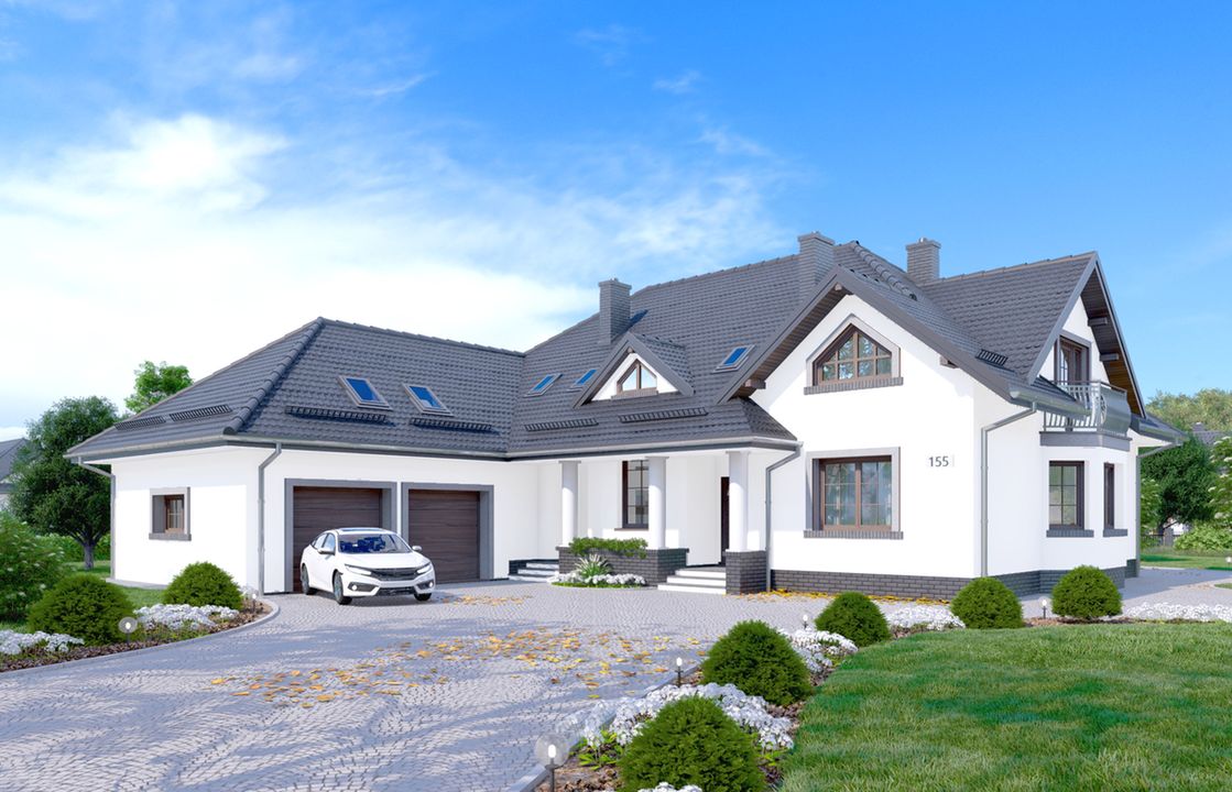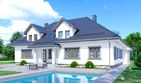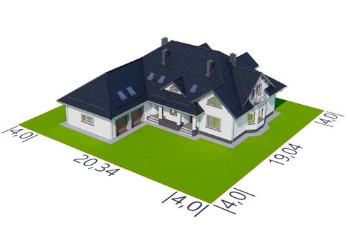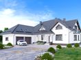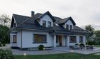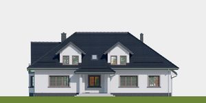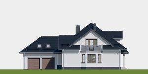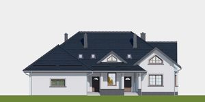 Graficzne opracowanie rzutów poglądowych widocznych na karcie projektu zostało wykonane przez Extradom.pl. Prezentowane przez Extradom.pl wizualizacje wykonane zostały przez autora projektu i należy poczytywać je jedynie za przykład i propozycję wykończenia, wizję architektoniczną autora projektu. Ostateczne wykończenie budynku może nastąpić na wiele sposobów. Szczegółowe rozwiązania zastosowane w oferowanej dokumentacji - w tym również ilość, lokalizacje i wygląd okien, drzwi, kominów - mogą w niewielkim stopniu różnić się od prezentowanej wizualizacji budynku.