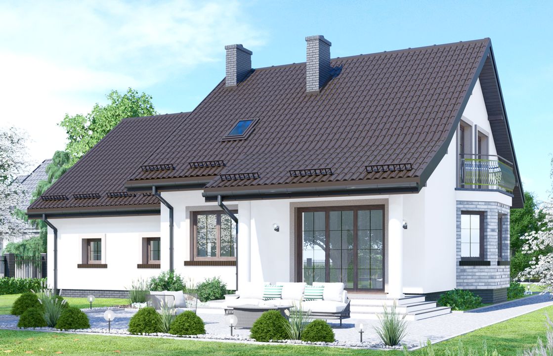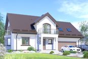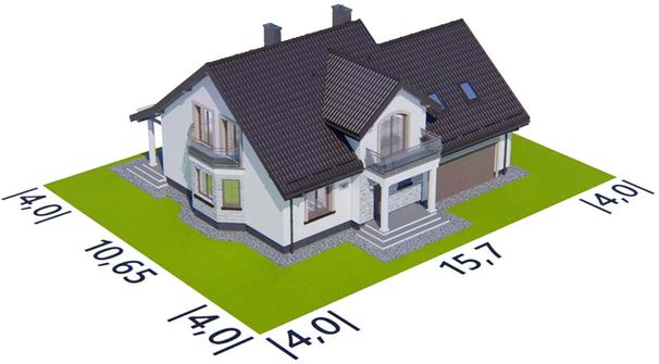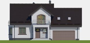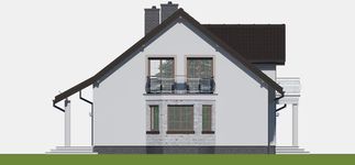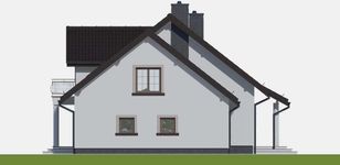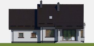 Graficzne opracowanie rzutów poglądowych widocznych na karcie projektu zostało wykonane przez Extradom.pl. Prezentowane przez Extradom.pl wizualizacje wykonane zostały przez autora projektu i należy poczytywać je jedynie za przykład i propozycję wykończenia, wizję architektoniczną autora projektu. Ostateczne wykończenie budynku może nastąpić na wiele sposobów. Szczegółowe rozwiązania zastosowane w oferowanej dokumentacji - w tym również ilość, lokalizacje i wygląd okien, drzwi, kominów - mogą w niewielkim stopniu różnić się od prezentowanej wizualizacji budynku.