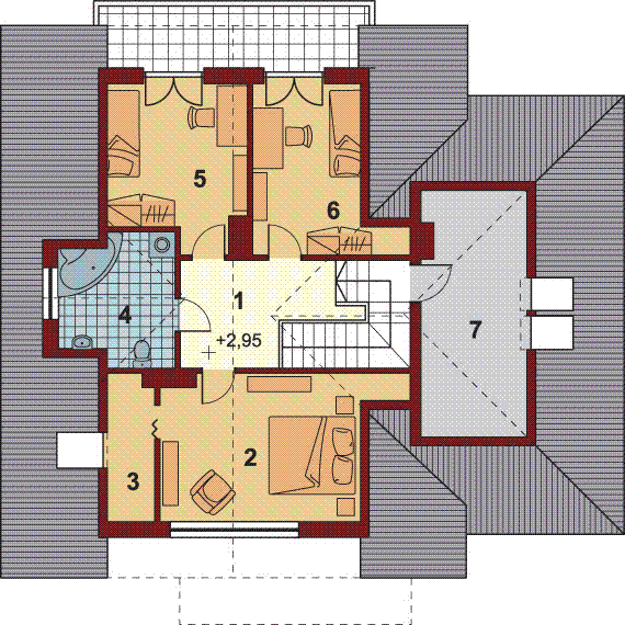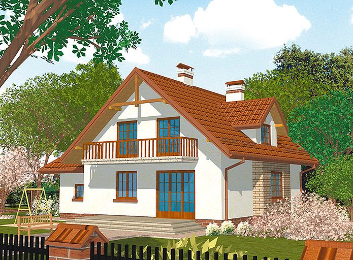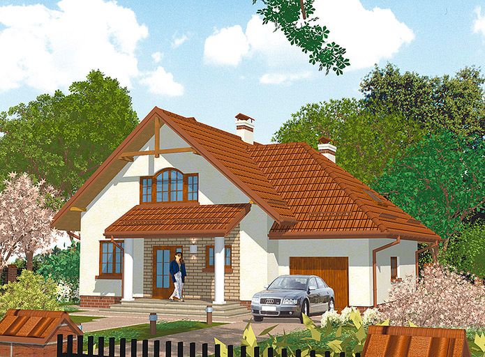 Graficzne opracowanie rzutów poglądowych widocznych na karcie projektu zostało wykonane przez Extradom.pl. Prezentowane przez Extradom.pl wizualizacje wykonane zostały przez autora projektu i należy poczytywać je jedynie za przykład i propozycję wykończenia, wizję architektoniczną autora projektu. Ostateczne wykończenie budynku może nastąpić na wiele sposobów. Szczegółowe rozwiązania zastosowane w oferowanej dokumentacji - w tym również ilość, lokalizacje i wygląd okien, drzwi, kominów - mogą w niewielkim stopniu różnić się od prezentowanej wizualizacji budynku.
