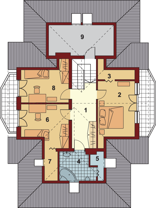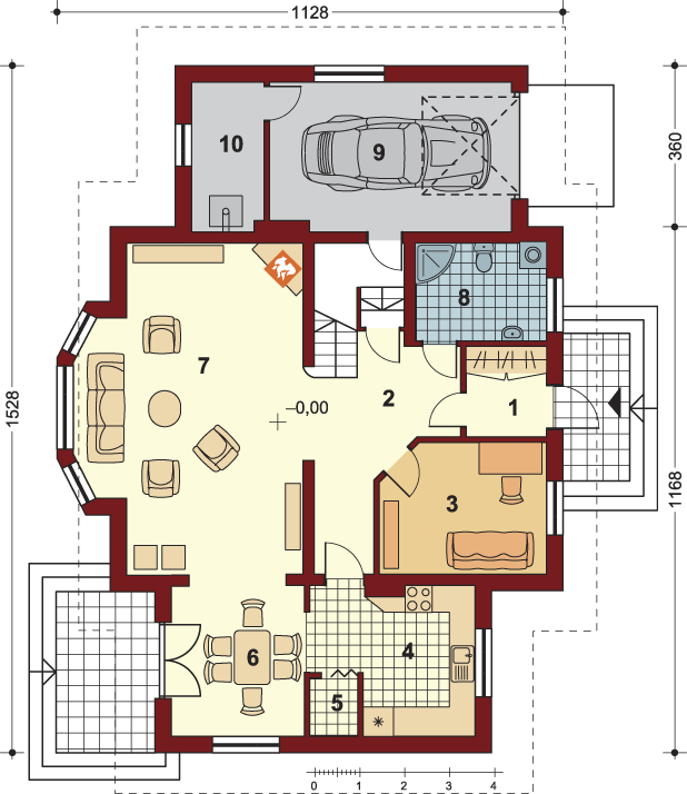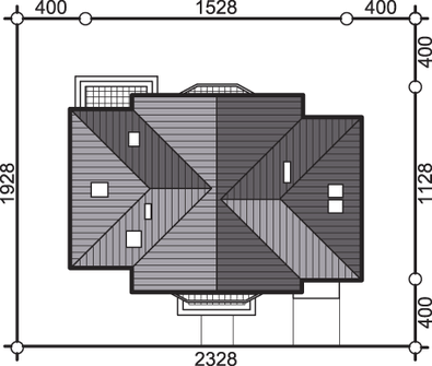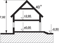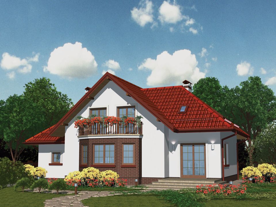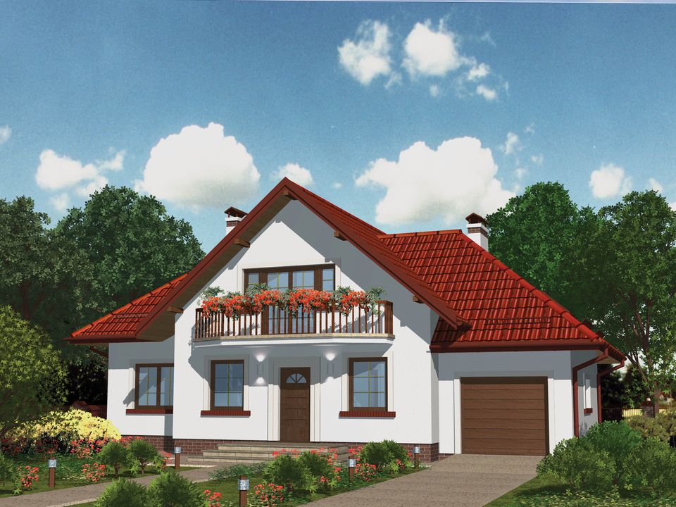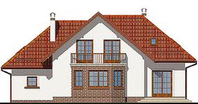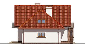 Graficzne opracowanie rzutów poglądowych widocznych na karcie projektu zostało wykonane przez Extradom.pl. Prezentowane przez Extradom.pl wizualizacje wykonane zostały przez autora projektu i należy poczytywać je jedynie za przykład i propozycję wykończenia, wizję architektoniczną autora projektu. Ostateczne wykończenie budynku może nastąpić na wiele sposobów. Szczegółowe rozwiązania zastosowane w oferowanej dokumentacji - w tym również ilość, lokalizacje i wygląd okien, drzwi, kominów - mogą w niewielkim stopniu różnić się od prezentowanej wizualizacji budynku.