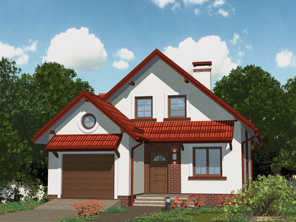 Graficzne opracowanie rzutów poglądowych widocznych na karcie projektu zostało wykonane przez Extradom.pl. Prezentowane przez Extradom.pl wizualizacje wykonane zostały przez autora projektu i należy poczytywać je jedynie za przykład i propozycję wykończenia, wizję architektoniczną autora projektu. Ostateczne wykończenie budynku może nastąpić na wiele sposobów. Szczegółowe rozwiązania zastosowane w oferowanej dokumentacji - w tym również ilość, lokalizacje i wygląd okien, drzwi, kominów - mogą w niewielkim stopniu różnić się od prezentowanej wizualizacji budynku.