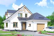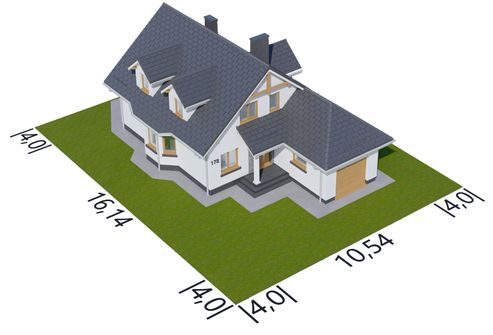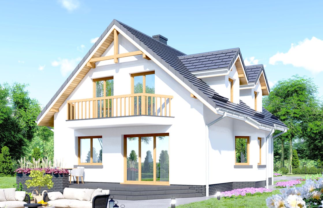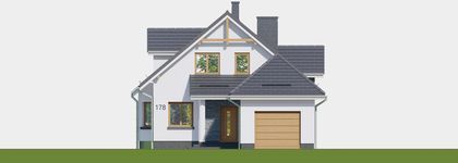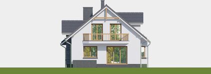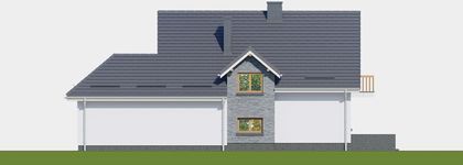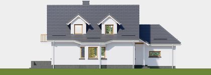 Graficzne opracowanie rzutów poglądowych widocznych na karcie projektu zostało wykonane przez Extradom.pl. Prezentowane przez Extradom.pl wizualizacje wykonane zostały przez autora projektu i należy poczytywać je jedynie za przykład i propozycję wykończenia, wizję architektoniczną autora projektu. Ostateczne wykończenie budynku może nastąpić na wiele sposobów. Szczegółowe rozwiązania zastosowane w oferowanej dokumentacji - w tym również ilość, lokalizacje i wygląd okien, drzwi, kominów - mogą w niewielkim stopniu różnić się od prezentowanej wizualizacji budynku.