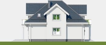 Graficzne opracowanie rzutów poglądowych widocznych na karcie projektu zostało wykonane przez Extradom.pl. Prezentowane przez Extradom.pl wizualizacje wykonane zostały przez autora projektu i należy poczytywać je jedynie za przykład i propozycję wykończenia, wizję architektoniczną autora projektu. Ostateczne wykończenie budynku może nastąpić na wiele sposobów. Szczegółowe rozwiązania zastosowane w oferowanej dokumentacji - w tym również ilość, lokalizacje i wygląd okien, drzwi, kominów - mogą w niewielkim stopniu różnić się od prezentowanej wizualizacji budynku.