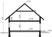 Ściany: pustaki ceramiczne Porotherm Dryfix + ocieplenie. Strop parteru: typu „TERIVA”. Strop poddasza: drewniany. Dach: dwuspadowy. Pokrycie dachu: dachówka płaska Koramic Orea. Ocieplenie poddasza: wełna mineralna. Tynk: mineralny. Okna dachowe: Velux.