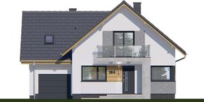 Graficzne opracowanie rzutów poglądowych widocznych na karcie projektu zostało wykonane przez Extradom.pl. Prezentowane przez Extradom.pl wizualizacje wykonane zostały przez autora projektu i należy poczytywać je jedynie za przykład i propozycję wykończenia, wizję architektoniczną autora projektu. Ostateczne wykończenie budynku może nastąpić na wiele sposobów. Szczegółowe rozwiązania zastosowane w oferowanej dokumentacji - w tym również ilość, lokalizacje i wygląd okien, drzwi, kominów - mogą w niewielkim stopniu różnić się od prezentowanej wizualizacji budynku.