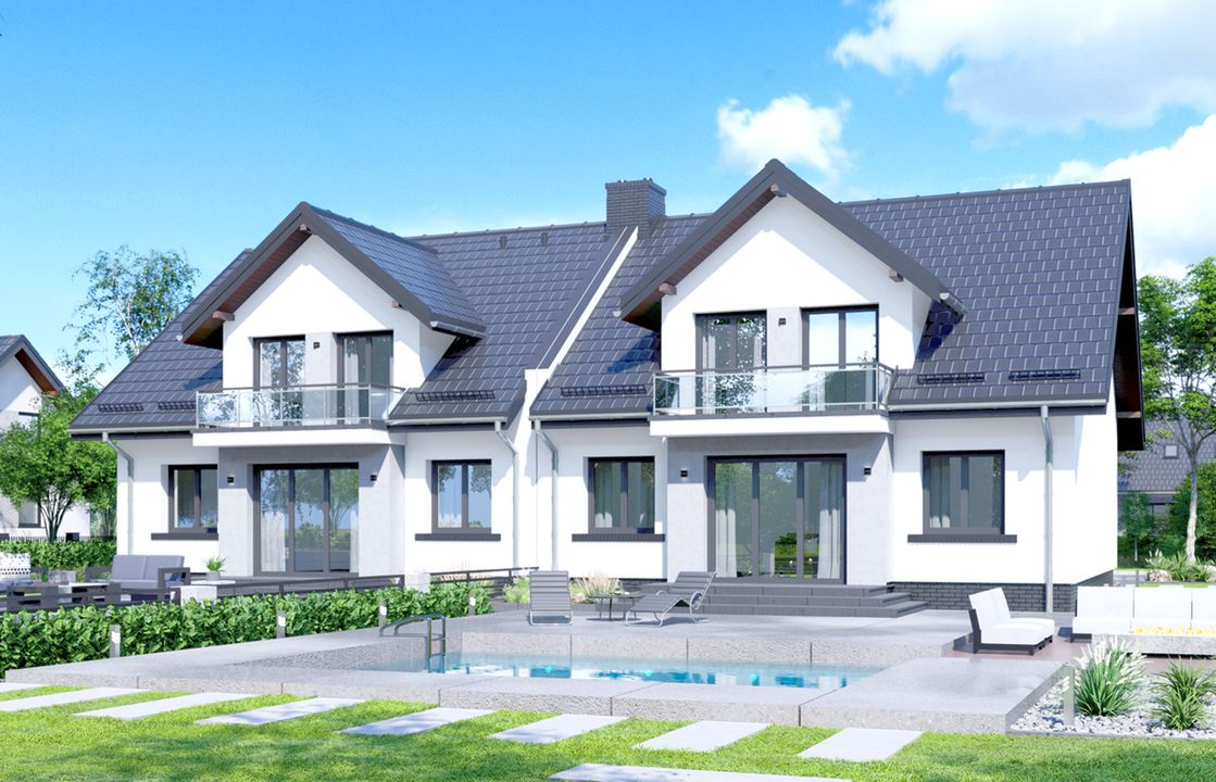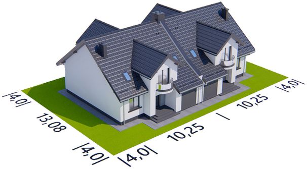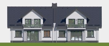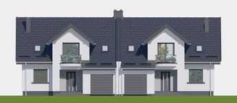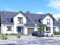 Graficzne opracowanie rzutów poglądowych widocznych na karcie projektu zostało wykonane przez Extradom.pl. Prezentowane przez Extradom.pl wizualizacje wykonane zostały przez autora projektu i należy poczytywać je jedynie za przykład i propozycję wykończenia, wizję architektoniczną autora projektu. Ostateczne wykończenie budynku może nastąpić na wiele sposobów. Szczegółowe rozwiązania zastosowane w oferowanej dokumentacji - w tym również ilość, lokalizacje i wygląd okien, drzwi, kominów - mogą w niewielkim stopniu różnić się od prezentowanej wizualizacji budynku.