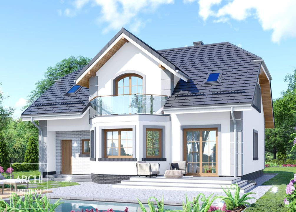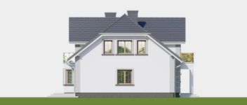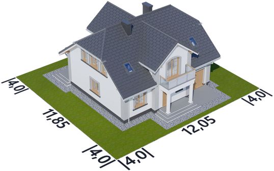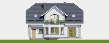 Graficzne opracowanie rzutów poglądowych widocznych na karcie projektu zostało wykonane przez Extradom.pl. Prezentowane przez Extradom.pl wizualizacje wykonane zostały przez autora projektu i należy poczytywać je jedynie za przykład i propozycję wykończenia, wizję architektoniczną autora projektu. Ostateczne wykończenie budynku może nastąpić na wiele sposobów. Szczegółowe rozwiązania zastosowane w oferowanej dokumentacji - w tym również ilość, lokalizacje i wygląd okien, drzwi, kominów - mogą w niewielkim stopniu różnić się od prezentowanej wizualizacji budynku.
