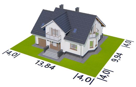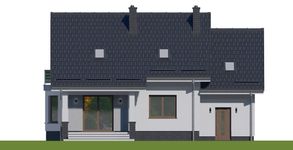 Graficzne opracowanie rzutów poglądowych widocznych na karcie projektu zostało wykonane przez Extradom.pl. Prezentowane przez Extradom.pl wizualizacje wykonane zostały przez autora projektu i należy poczytywać je jedynie za przykład i propozycję wykończenia, wizję architektoniczną autora projektu. Ostateczne wykończenie budynku może nastąpić na wiele sposobów. Szczegółowe rozwiązania zastosowane w oferowanej dokumentacji - w tym również ilość, lokalizacje i wygląd okien, drzwi, kominów - mogą w niewielkim stopniu różnić się od prezentowanej wizualizacji budynku.