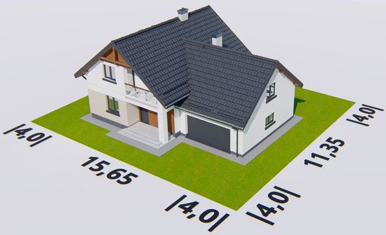 Graficzne opracowanie rzutów poglądowych widocznych na karcie projektu zostało wykonane przez Extradom.pl. Prezentowane przez Extradom.pl wizualizacje wykonane zostały przez autora projektu i należy poczytywać je jedynie za przykład i propozycję wykończenia, wizję architektoniczną autora projektu. Ostateczne wykończenie budynku może nastąpić na wiele sposobów. Szczegółowe rozwiązania zastosowane w oferowanej dokumentacji - w tym również ilość, lokalizacje i wygląd okien, drzwi, kominów - mogą w niewielkim stopniu różnić się od prezentowanej wizualizacji budynku.