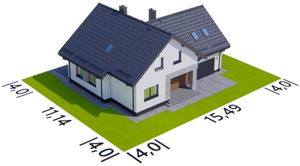 Graficzne opracowanie rzutów poglądowych widocznych na karcie projektu zostało wykonane przez Extradom.pl. Prezentowane przez Extradom.pl wizualizacje wykonane zostały przez autora projektu i należy poczytywać je jedynie za przykład i propozycję wykończenia, wizję architektoniczną autora projektu. Ostateczne wykończenie budynku może nastąpić na wiele sposobów. Szczegółowe rozwiązania zastosowane w oferowanej dokumentacji - w tym również ilość, lokalizacje i wygląd okien, drzwi, kominów - mogą w niewielkim stopniu różnić się od prezentowanej wizualizacji budynku.