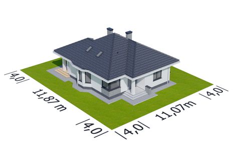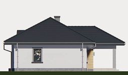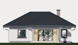 Graficzne opracowanie rzutów poglądowych widocznych na karcie projektu zostało wykonane przez Extradom.pl. Prezentowane przez Extradom.pl wizualizacje wykonane zostały przez autora projektu i należy poczytywać je jedynie za przykład i propozycję wykończenia, wizję architektoniczną autora projektu. Ostateczne wykończenie budynku może nastąpić na wiele sposobów. Szczegółowe rozwiązania zastosowane w oferowanej dokumentacji - w tym również ilość, lokalizacje i wygląd okien, drzwi, kominów - mogą w niewielkim stopniu różnić się od prezentowanej wizualizacji budynku.