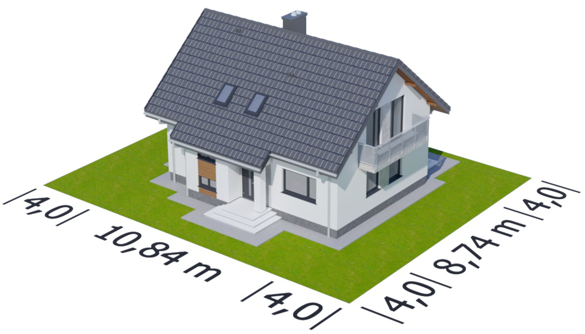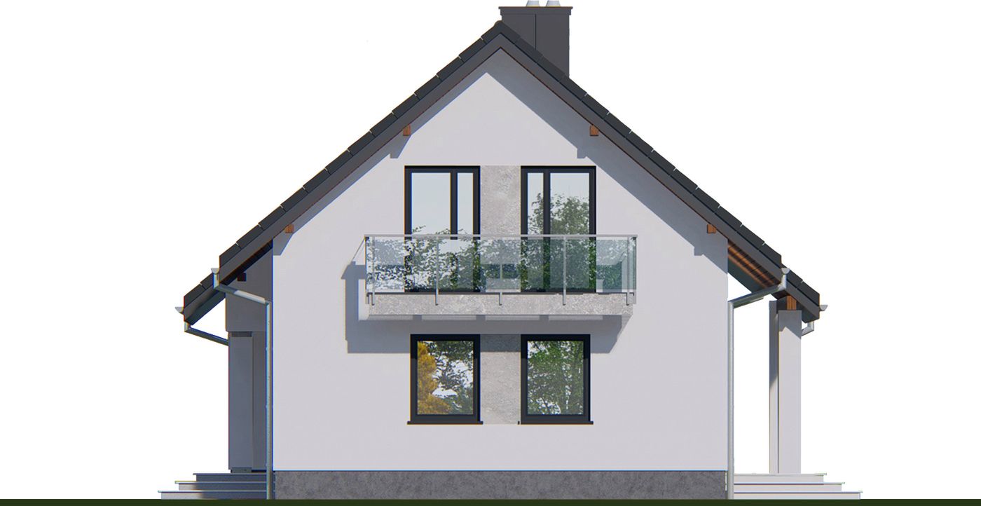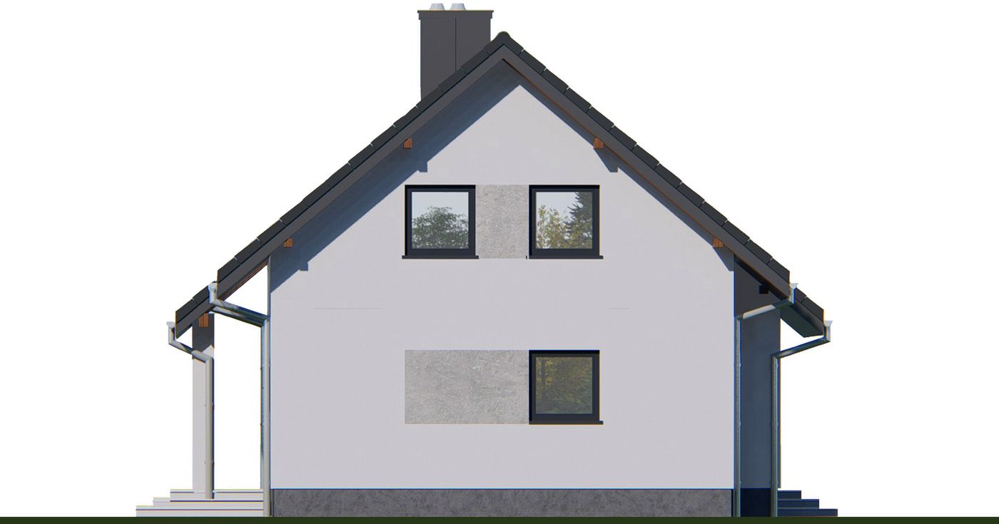Graficzne opracowanie rzutów poglądowych widocznych na karcie projektu zostało wykonane przez Extradom.pl. Prezentowane przez Extradom.pl wizualizacje wykonane zostały przez autora projektu i należy poczytywać je jedynie za przykład i propozycję wykończenia, wizję architektoniczną autora projektu. Ostateczne wykończenie budynku może nastąpić na wiele sposobów. Szczegółowe rozwiązania zastosowane w oferowanej dokumentacji - w tym również ilość, lokalizacje i wygląd okien, drzwi, kominów - mogą w niewielkim stopniu różnić się od prezentowanej wizualizacji budynku.