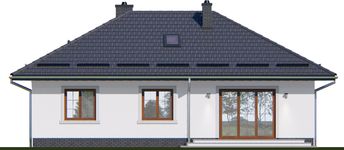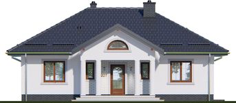 Graficzne opracowanie rzutów poglądowych widocznych na karcie projektu zostało wykonane przez Extradom.pl. Prezentowane przez Extradom.pl wizualizacje wykonane zostały przez autora projektu i należy poczytywać je jedynie za przykład i propozycję wykończenia, wizję architektoniczną autora projektu. Ostateczne wykończenie budynku może nastąpić na wiele sposobów. Szczegółowe rozwiązania zastosowane w oferowanej dokumentacji - w tym również ilość, lokalizacje i wygląd okien, drzwi, kominów - mogą w niewielkim stopniu różnić się od prezentowanej wizualizacji budynku.
