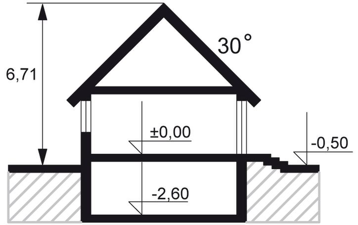 Ściany: beton komórkowy + ocieplenie. Strop parteru: typu TERIVA. Strop poddasza: drewniany. Dach: drewniany, wielospadowy. Pokrycie dachu: dachówka lub blacha. Ocieplenie poddasza: wełna mineralna ROCKWOOL. Tynk: mineralny.