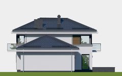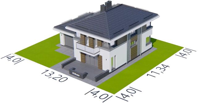Graficzne opracowanie rzutów poglądowych widocznych na karcie projektu zostało wykonane przez Extradom.pl. Prezentowane przez Extradom.pl wizualizacje wykonane zostały przez autora projektu i należy poczytywać je jedynie za przykład i propozycję wykończenia, wizję architektoniczną autora projektu. Ostateczne wykończenie budynku może nastąpić na wiele sposobów. Szczegółowe rozwiązania zastosowane w oferowanej dokumentacji - w tym również ilość, lokalizacje i wygląd okien, drzwi, kominów - mogą w niewielkim stopniu różnić się od prezentowanej wizualizacji budynku.