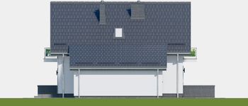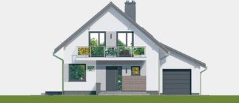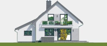 Graficzne opracowanie rzutów poglądowych widocznych na karcie projektu zostało wykonane przez Extradom.pl. Prezentowane przez Extradom.pl wizualizacje wykonane zostały przez autora projektu i należy poczytywać je jedynie za przykład i propozycję wykończenia, wizję architektoniczną autora projektu. Ostateczne wykończenie budynku może nastąpić na wiele sposobów. Szczegółowe rozwiązania zastosowane w oferowanej dokumentacji - w tym również ilość, lokalizacje i wygląd okien, drzwi, kominów - mogą w niewielkim stopniu różnić się od prezentowanej wizualizacji budynku.