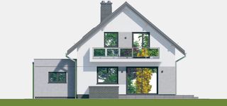 Graficzne opracowanie rzutów poglądowych widocznych na karcie projektu zostało wykonane przez Extradom.pl. Prezentowane przez Extradom.pl wizualizacje wykonane zostały przez autora projektu i należy poczytywać je jedynie za przykład i propozycję wykończenia, wizję architektoniczną autora projektu. Ostateczne wykończenie budynku może nastąpić na wiele sposobów. Szczegółowe rozwiązania zastosowane w oferowanej dokumentacji - w tym również ilość, lokalizacje i wygląd okien, drzwi, kominów - mogą w niewielkim stopniu różnić się od prezentowanej wizualizacji budynku.