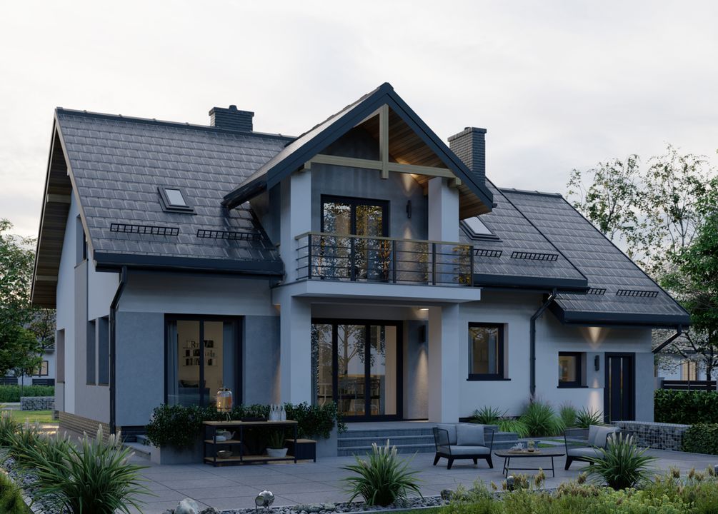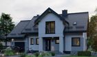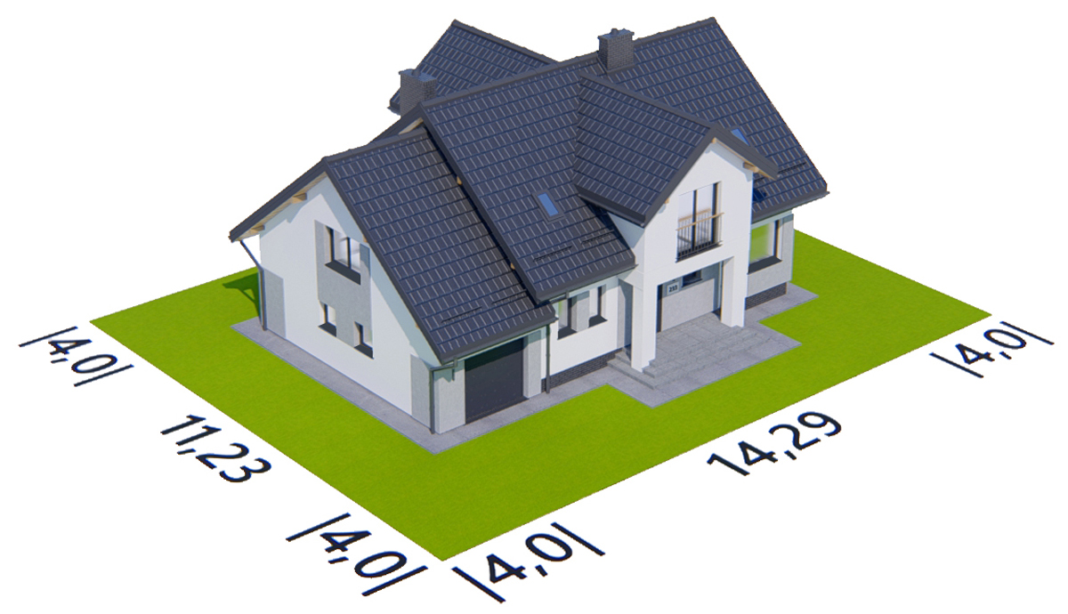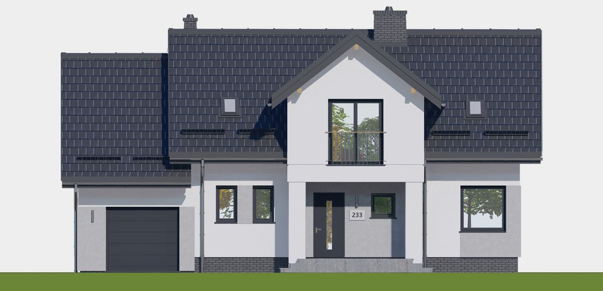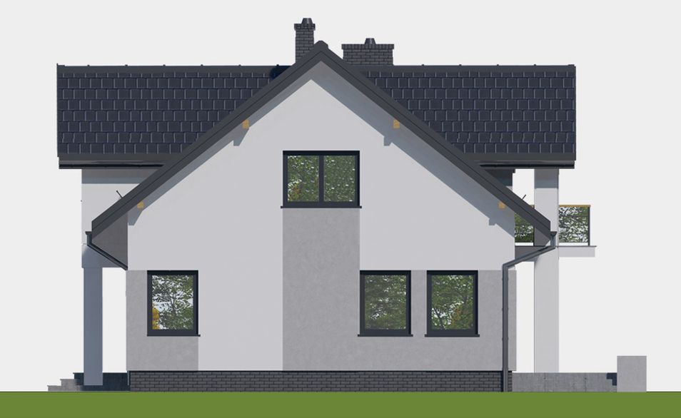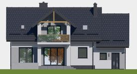 Graficzne opracowanie rzutów poglądowych widocznych na karcie projektu zostało wykonane przez Extradom.pl. Prezentowane przez Extradom.pl wizualizacje wykonane zostały przez autora projektu i należy poczytywać je jedynie za przykład i propozycję wykończenia, wizję architektoniczną autora projektu. Ostateczne wykończenie budynku może nastąpić na wiele sposobów. Szczegółowe rozwiązania zastosowane w oferowanej dokumentacji - w tym również ilość, lokalizacje i wygląd okien, drzwi, kominów - mogą w niewielkim stopniu różnić się od prezentowanej wizualizacji budynku.