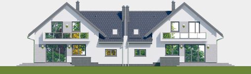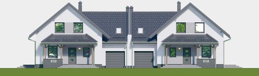 Graficzne opracowanie rzutów poglądowych widocznych na karcie projektu zostało wykonane przez Extradom.pl. Prezentowane przez Extradom.pl wizualizacje wykonane zostały przez autora projektu i należy poczytywać je jedynie za przykład i propozycję wykończenia, wizję architektoniczną autora projektu. Ostateczne wykończenie budynku może nastąpić na wiele sposobów. Szczegółowe rozwiązania zastosowane w oferowanej dokumentacji - w tym również ilość, lokalizacje i wygląd okien, drzwi, kominów - mogą w niewielkim stopniu różnić się od prezentowanej wizualizacji budynku.