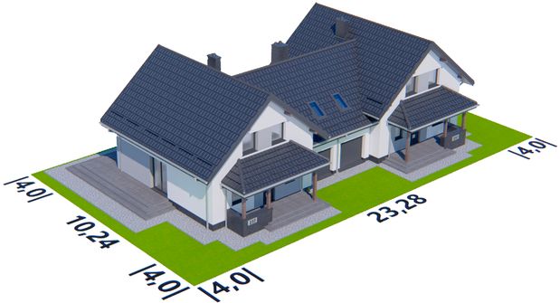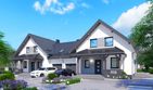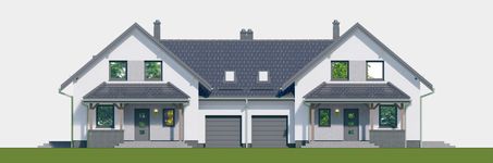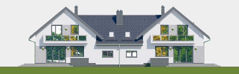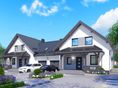 Graficzne opracowanie rzutów poglądowych widocznych na karcie projektu zostało wykonane przez Extradom.pl. Prezentowane przez Extradom.pl wizualizacje wykonane zostały przez autora projektu i należy poczytywać je jedynie za przykład i propozycję wykończenia, wizję architektoniczną autora projektu. Ostateczne wykończenie budynku może nastąpić na wiele sposobów. Szczegółowe rozwiązania zastosowane w oferowanej dokumentacji - w tym również ilość, lokalizacje i wygląd okien, drzwi, kominów - mogą w niewielkim stopniu różnić się od prezentowanej wizualizacji budynku.